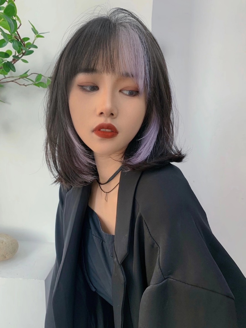 一款显白百搭的黑茶色加挂耳发带染,谁染谁好看!