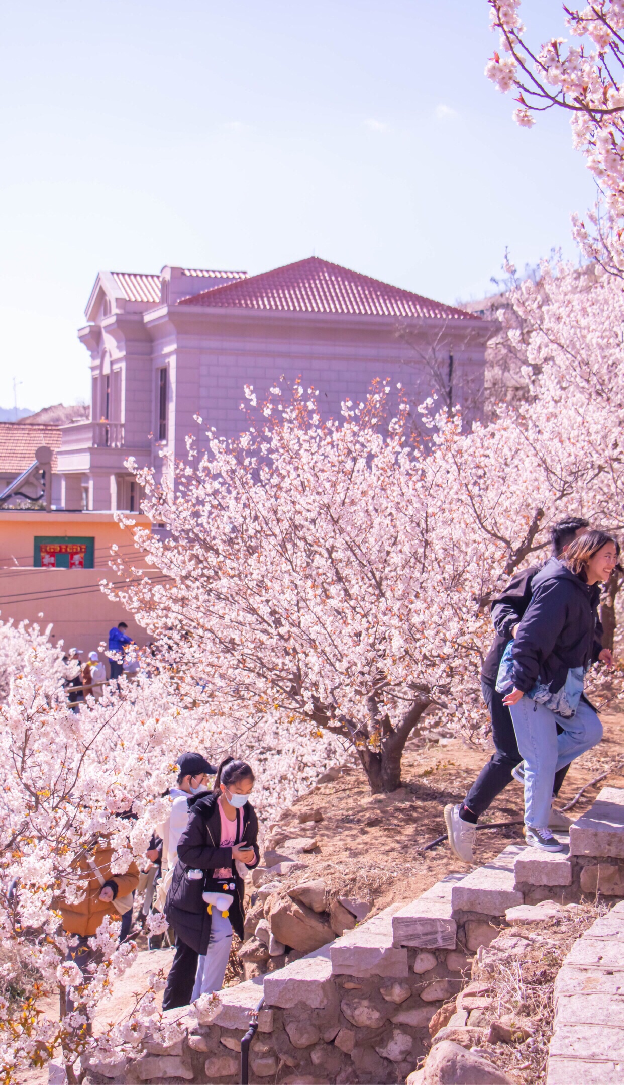 在青岛崂山西侧有一条狭长的山谷,被当地人称做“大崂樱桃谷”。随着天气回暖,大崂樱桃谷的樱桃花大面积绽放,满山遍野的樱桃花海如云似霞,宛若仙境。