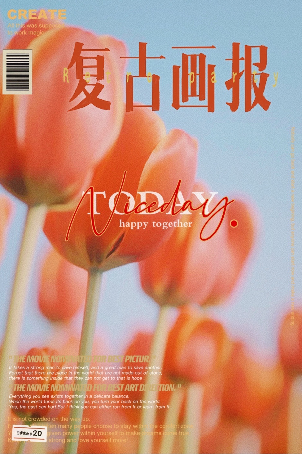 增加颗粒度打造复古油画质感/同色系港风杂志封面贴纸/春日花花-美图社区-美图秀秀