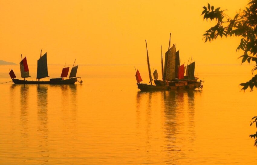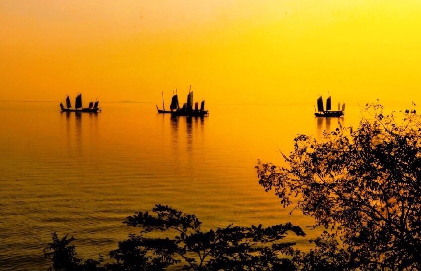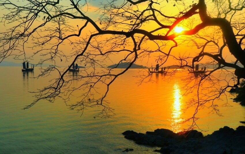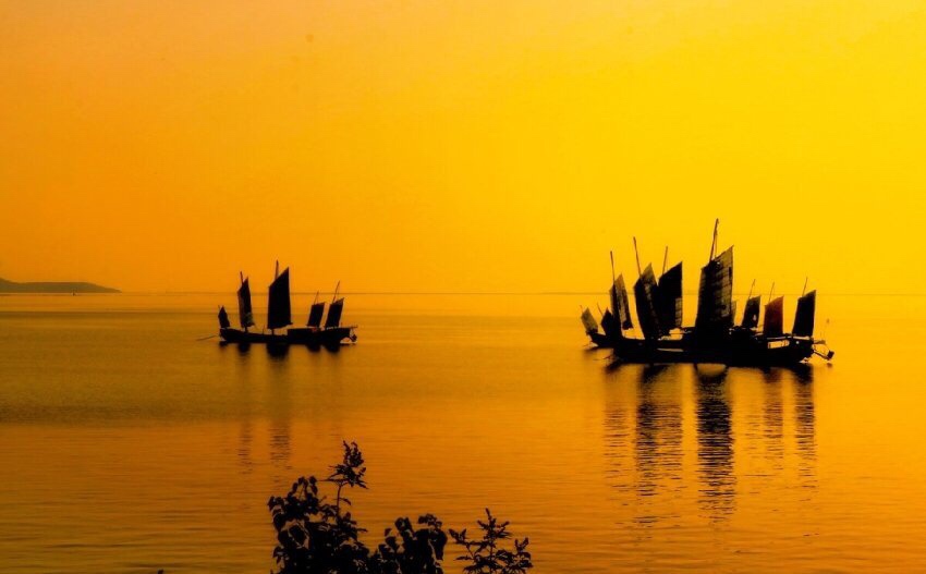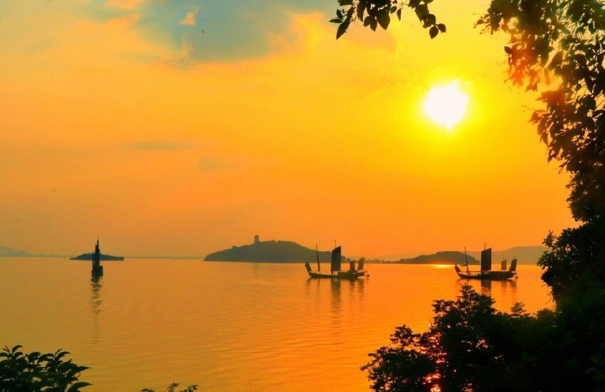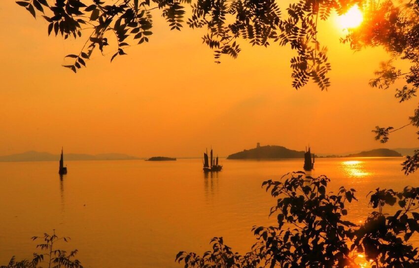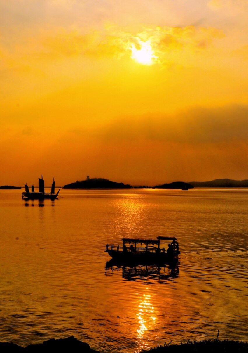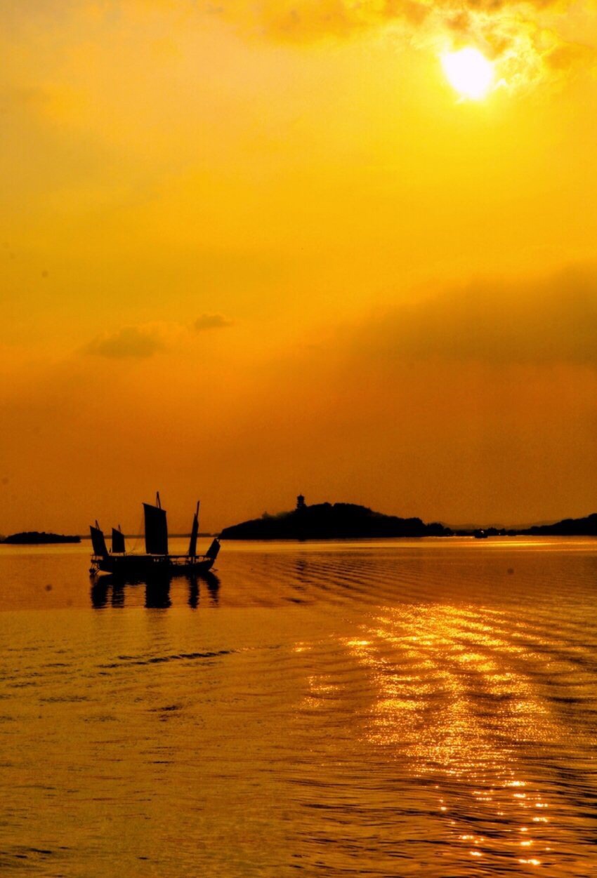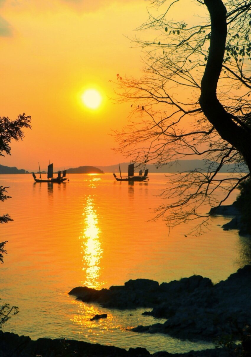 黎明破晓朝阳升,夜幕降尽绛帐擎。 暗去明来寒复暖,天地同辉安祥盈。