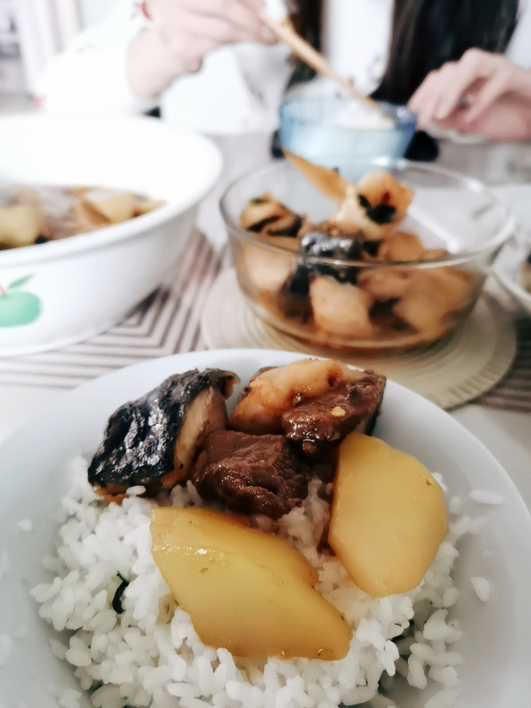 午餐:风干鱼,咖喱牛肉,炒青菜,米饭