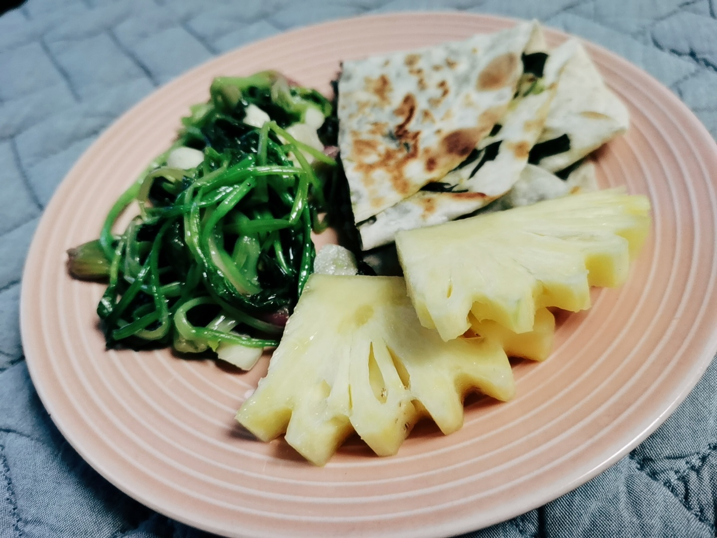 晚餐:菜馍,青菜,菠萝,香蕉😜