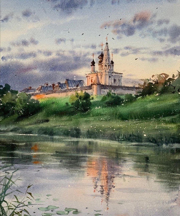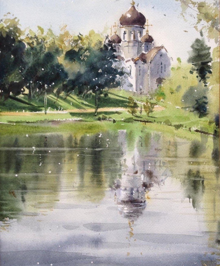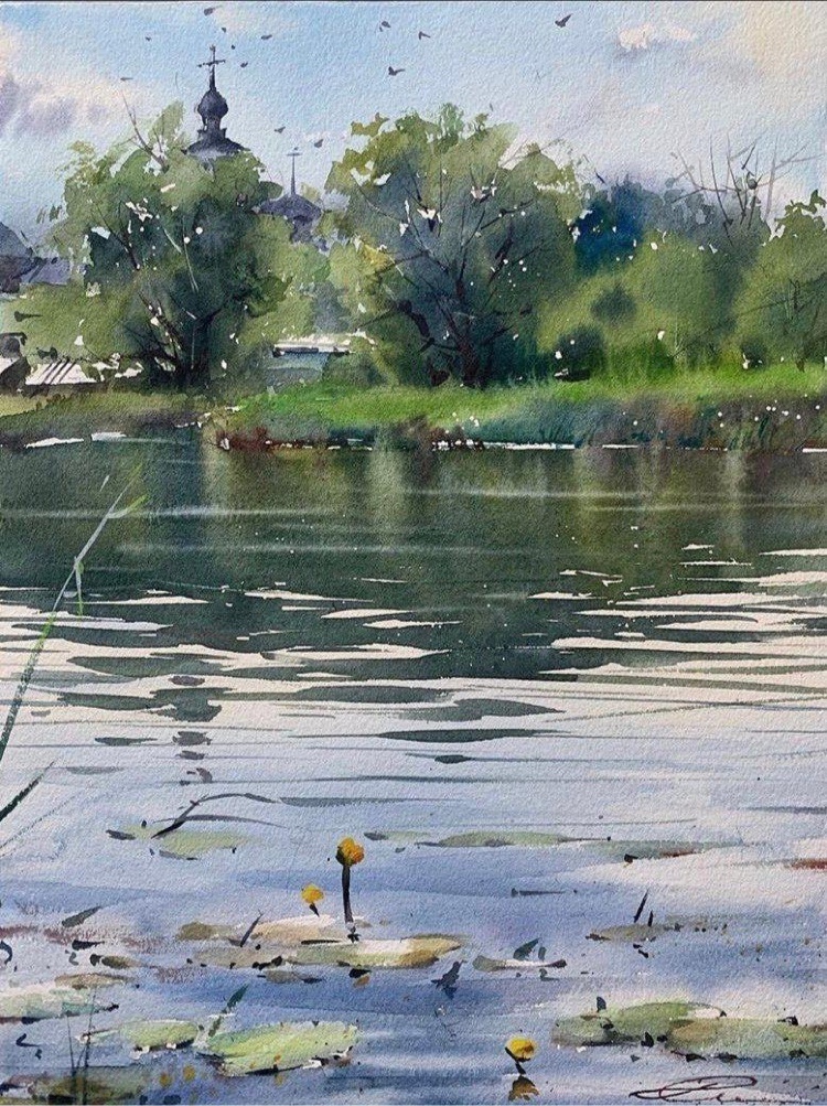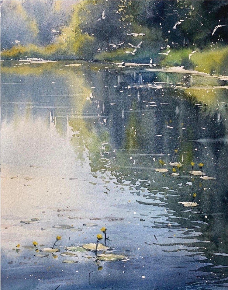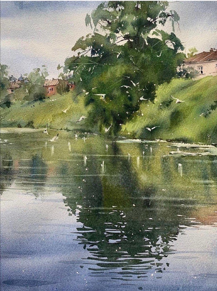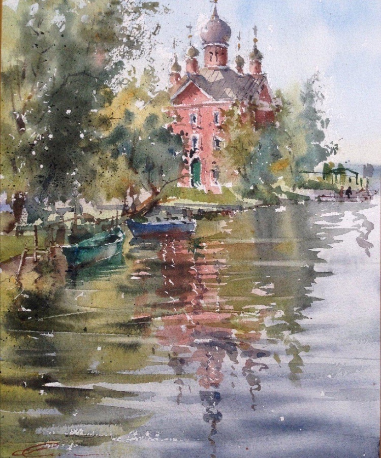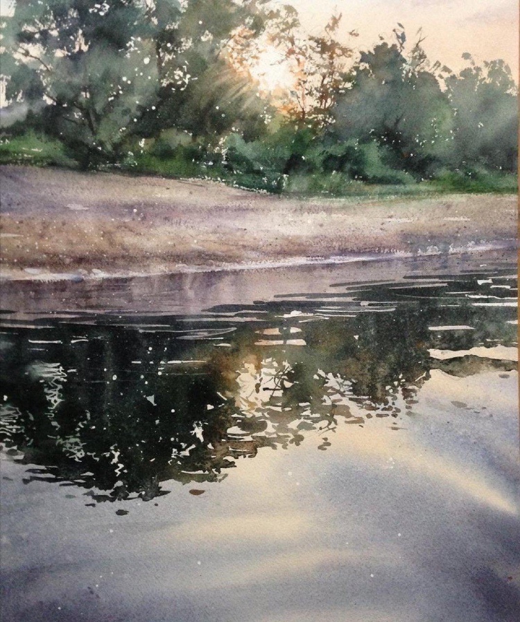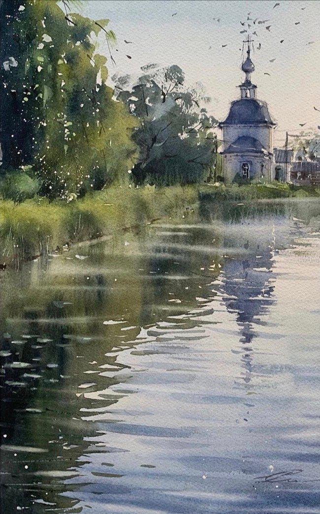 水彩下的水波,层层涟漪好不生动,把光的感觉处理到了一个新的高度。 水彩的自然蔓延让画面变得柔和,但同时对于用笔和调色有了更好的要求,风景写生就是为了能在实地观察而非闭门造车,丰富了自己的视野,绘画的水平自然能够得到质的提升