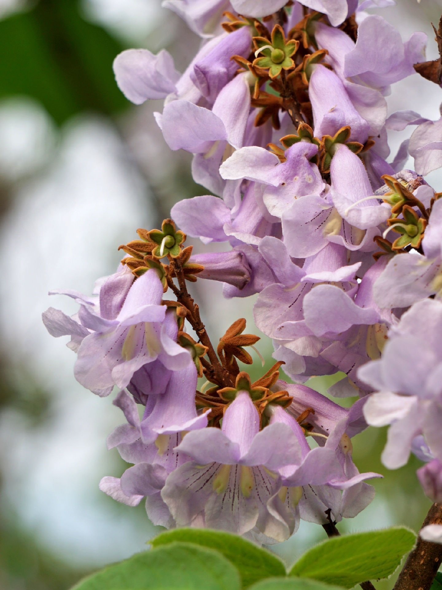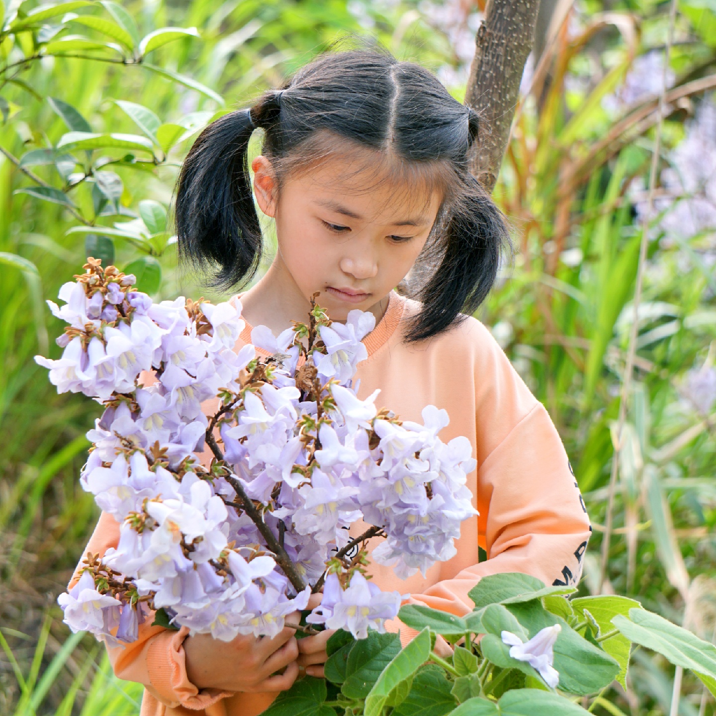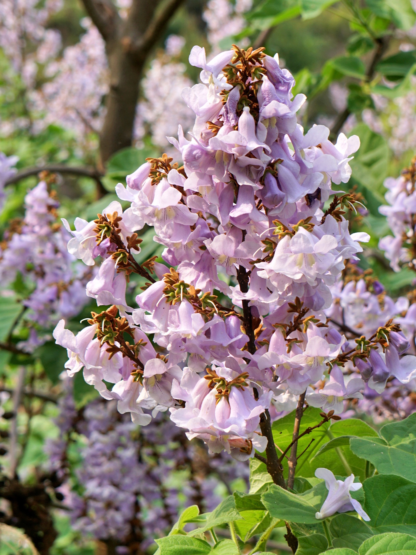 【泡桐花】春分清明的节气之花,一串串泛紫的花,硕大的叶子,特别艳丽,别名:日本泡桐、桐、毛泡桐、泡桐、白桐、紫花泡桐、绒毛泡桐、锈毛泡桐:“树阴似盖遮炎暑,花穗如烟胜紫鹃“。“花语是永恒守候,淡紫烟霞漫際涯,喇叭列队阵容佳。心牵春夏迎和送,大爱无声已表达。—良宵《七绝·泡桐花》”