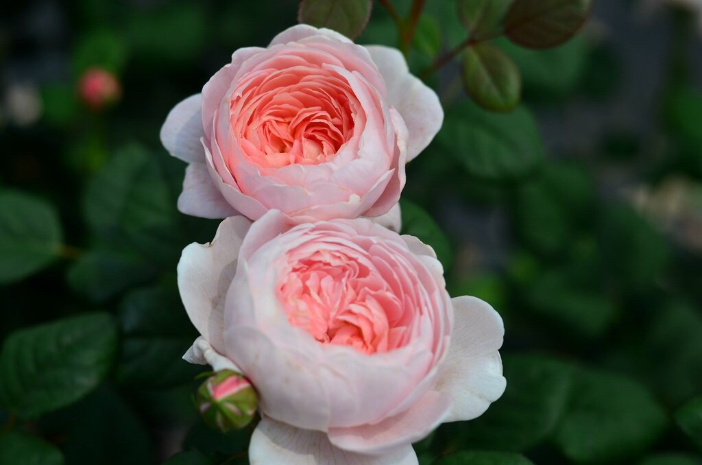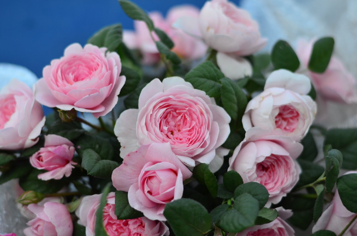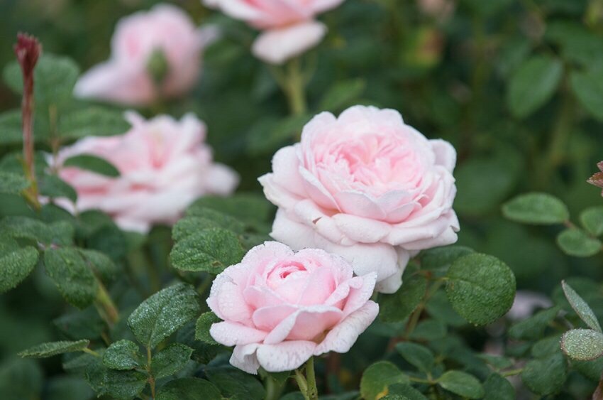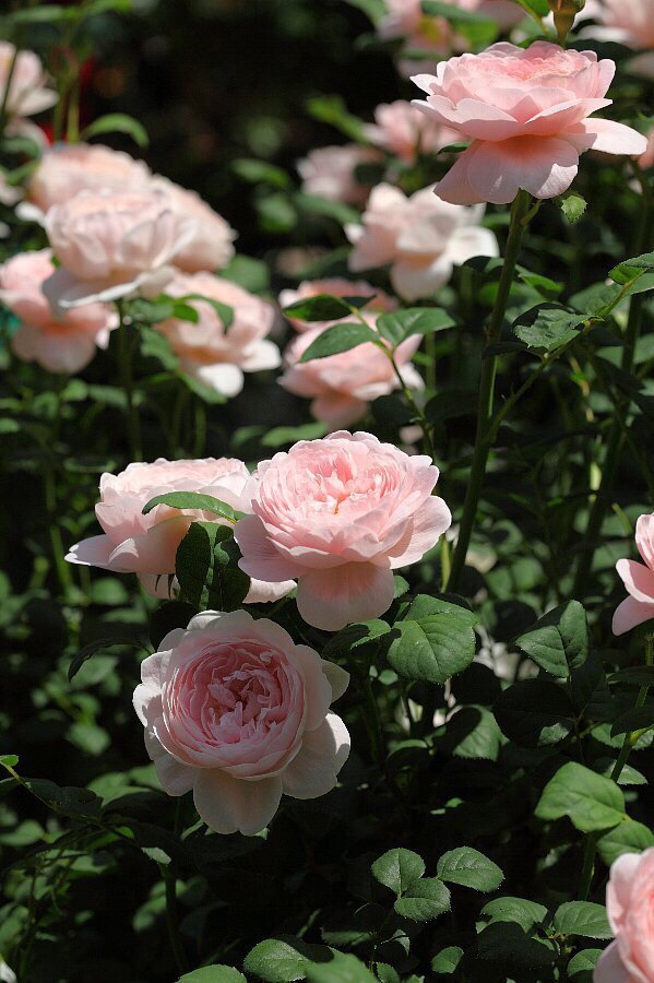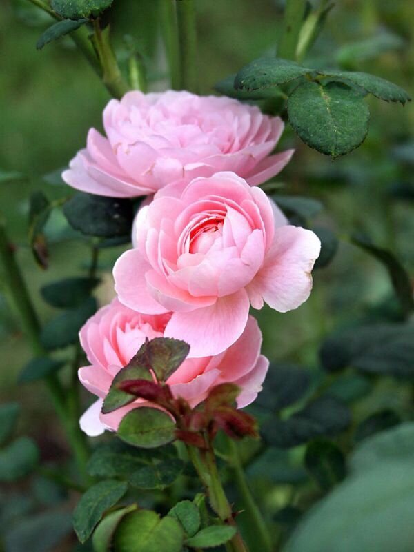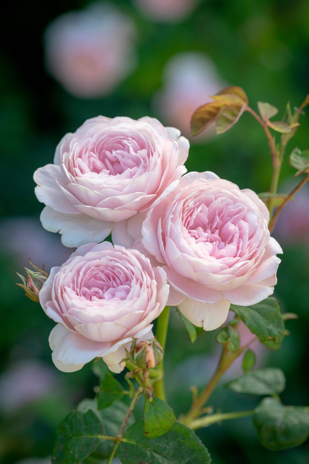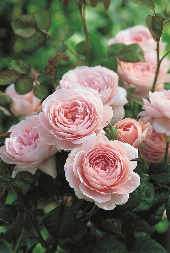 精致的小花蕾打开成半开放的杯状,而后逐渐宽展呈浅杯状;花色开始是软杏黄色,逐渐变为纯柔粉色,有一种可爱温和的没药香。植株茂密直立,抗性强。