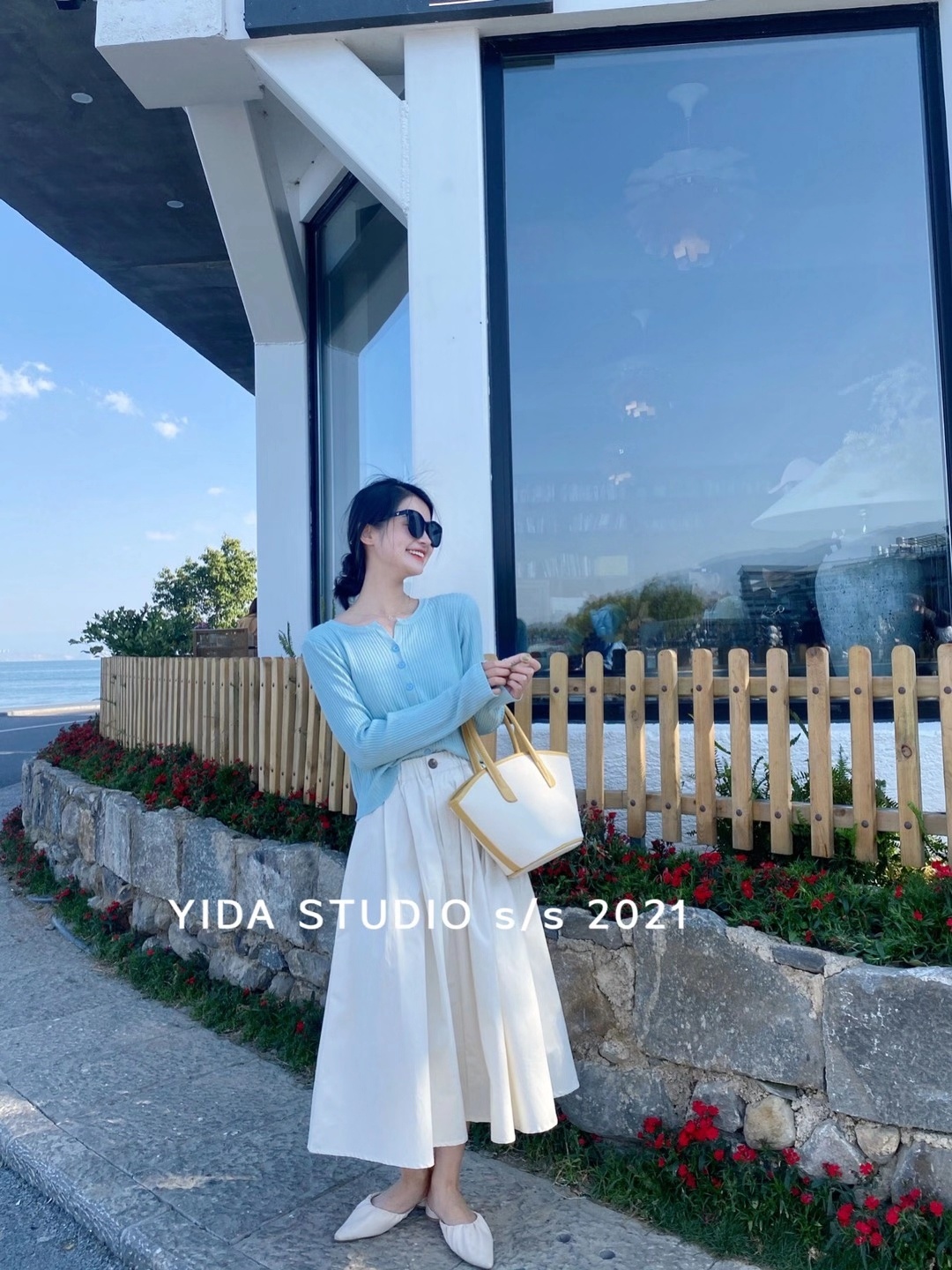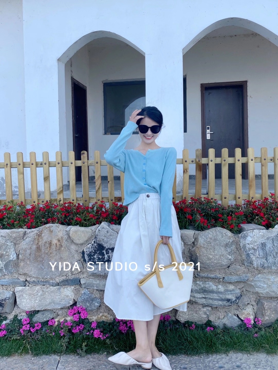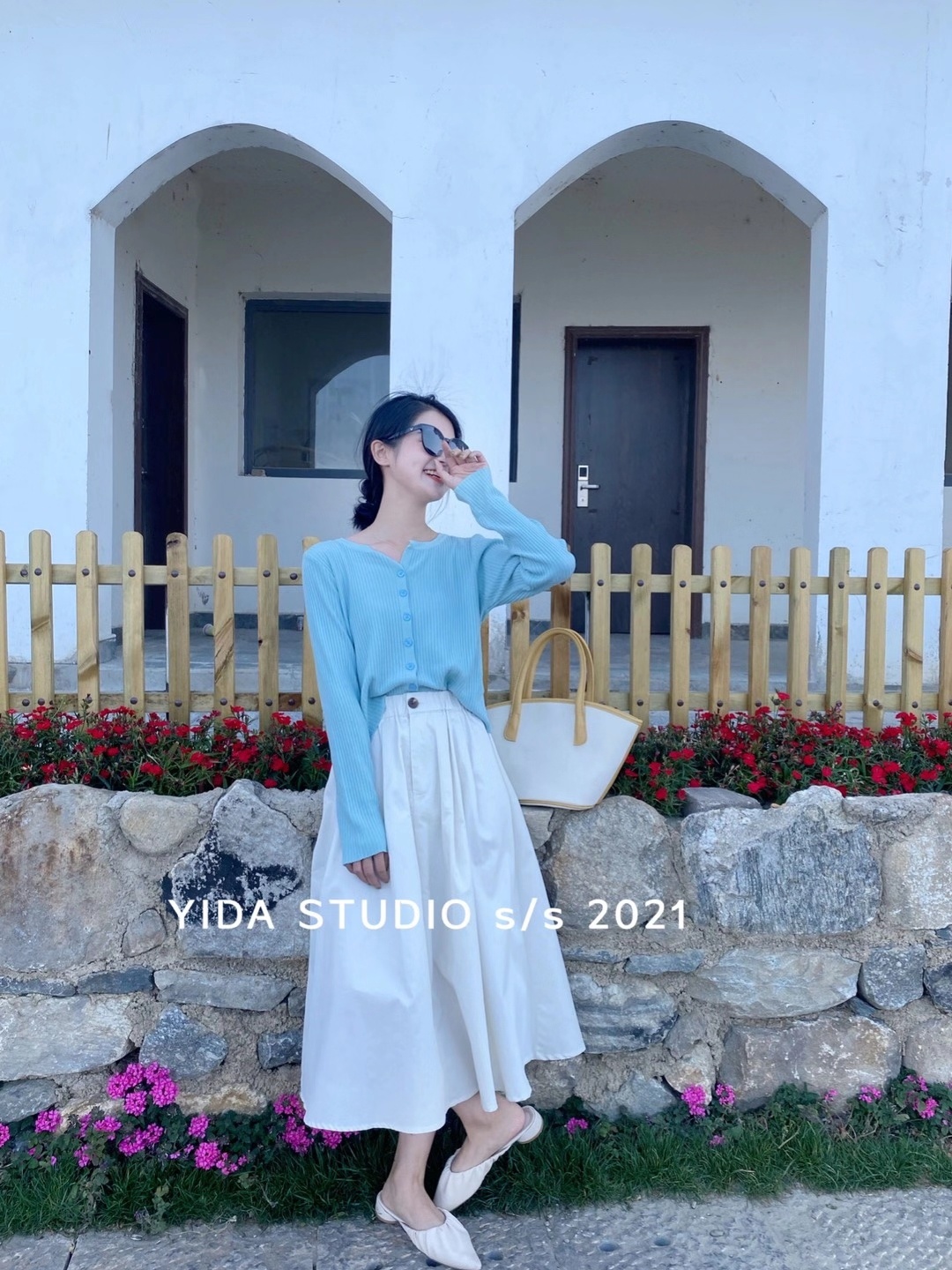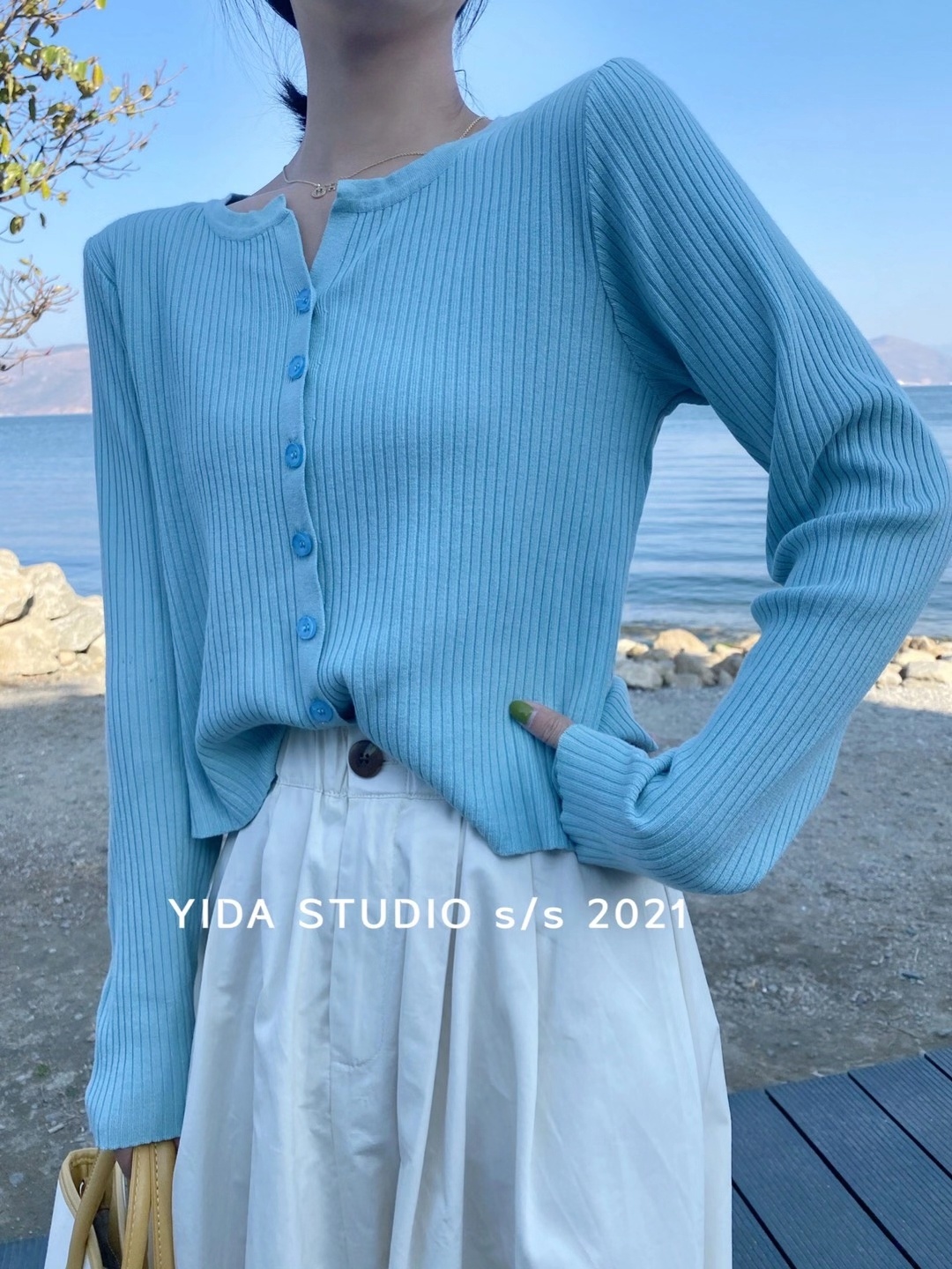 实用又好看的针织开衫来啦 版型和质感都hin棒的小衫 搭配小吊带或者吊带裙就灰常温柔韩系 喜欢它长袖的设计 上身显得手臂纤细修长 质感也hin棒 软软糯糯的 五色都很好搭配的颜色 单穿搭配个牛仔裤 当然也可以当做内搭穿啦