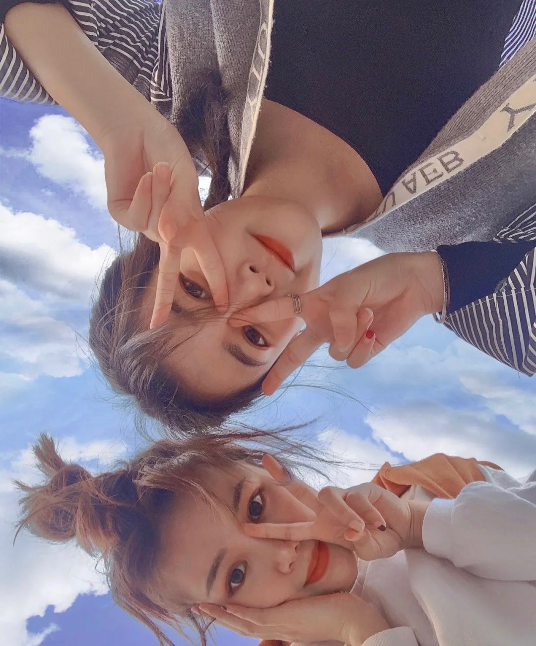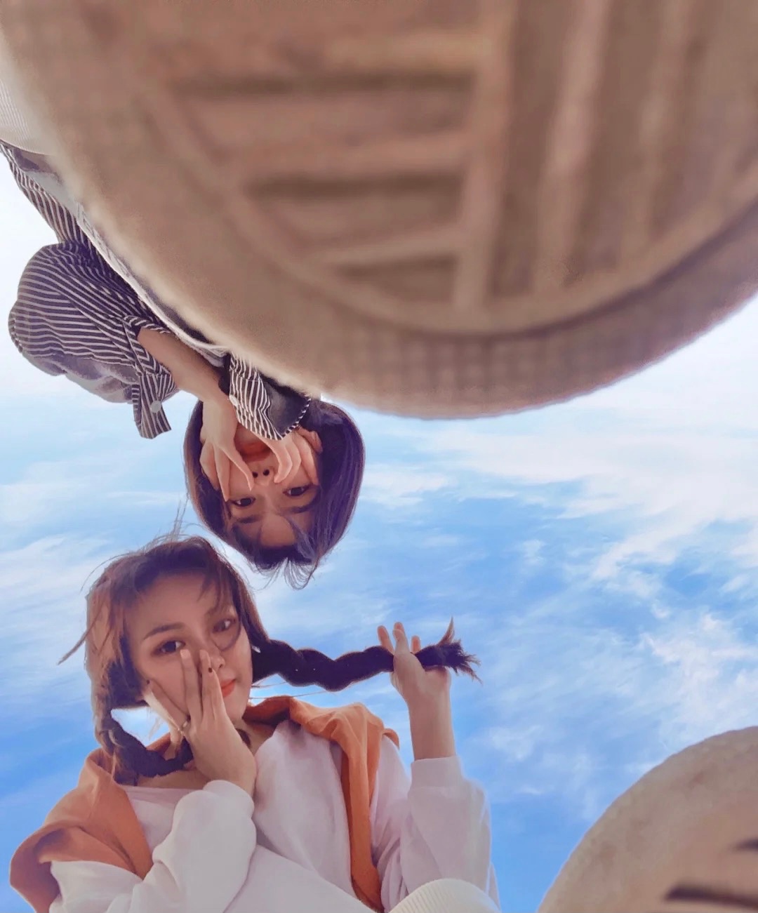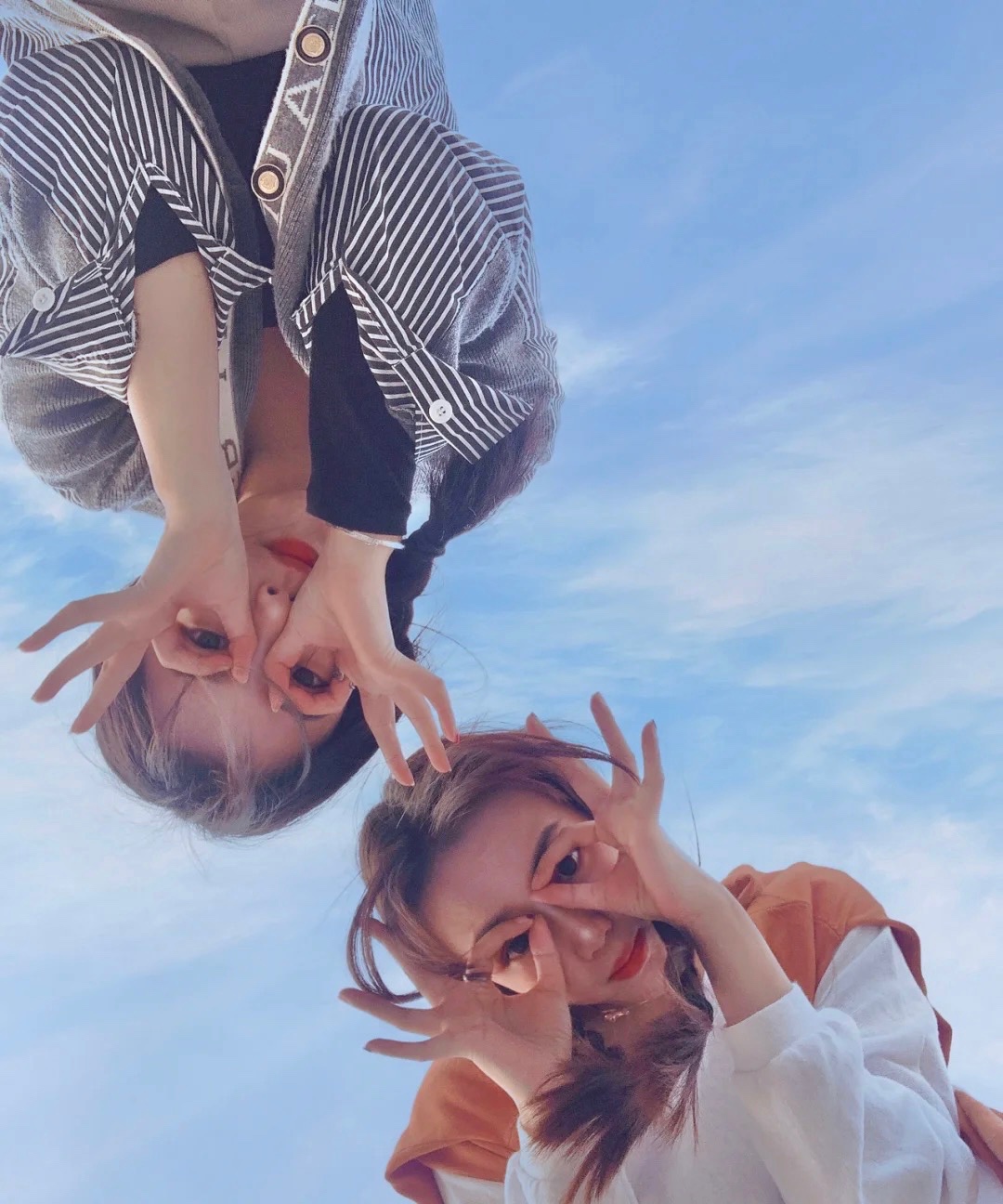 跟闺蜜一起发朋友圈照片可各自倒过来,自己在下面