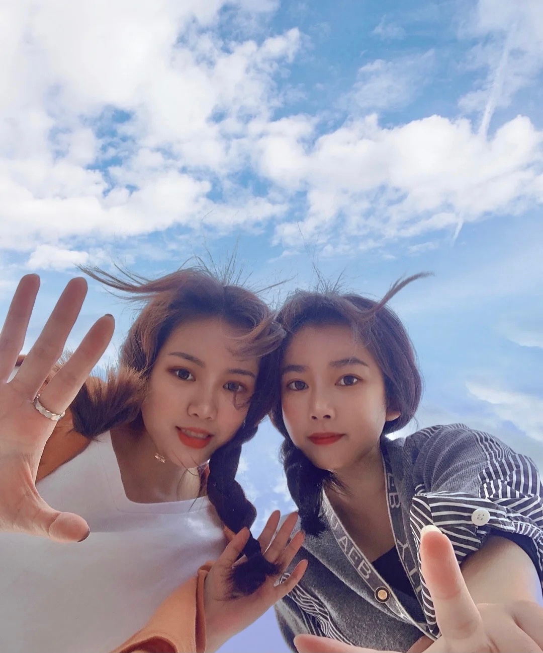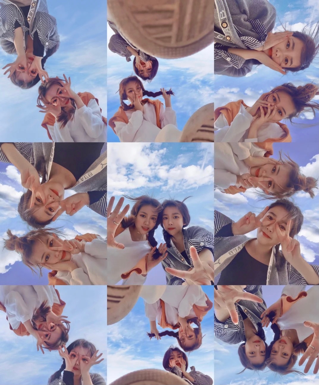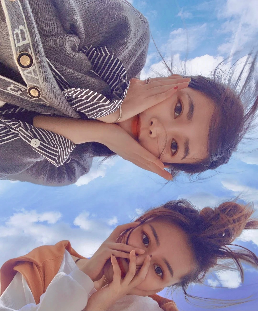 跟闺蜜一起发朋友圈照片可各自倒过来,自己在下面