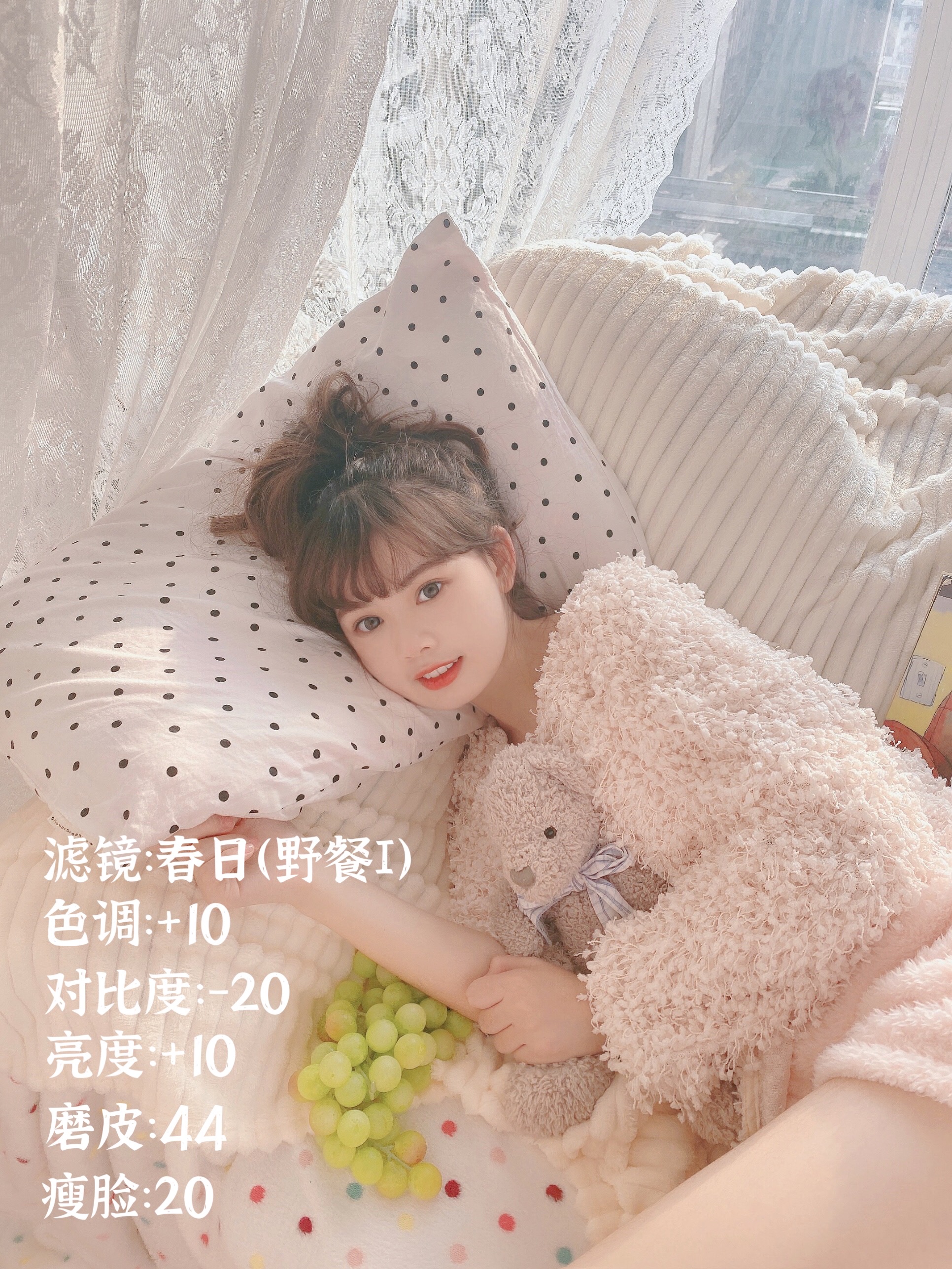 很多宝宝都私信我问我平时怎么拍照,我大部分照片都是相机拍的,但最近我发现了美颜相机的一款滤镜完全可以替代相机了!!!!这个滤镜拍照真的绝了,皮肤拍的超级通透,参数我都放在图片上啦,宝宝们可以一起学起来呀!