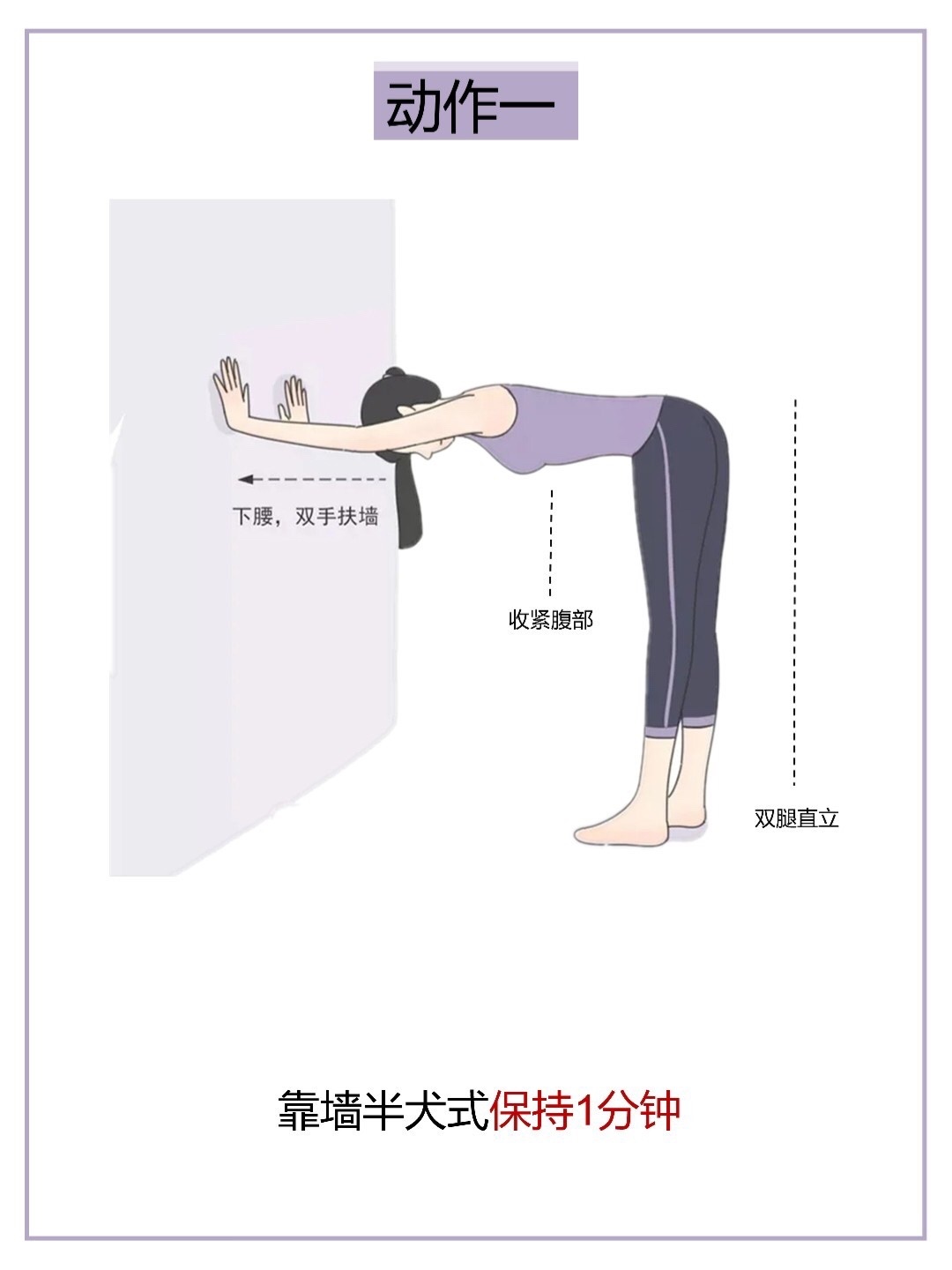 👉动作一:靠墙半犬式