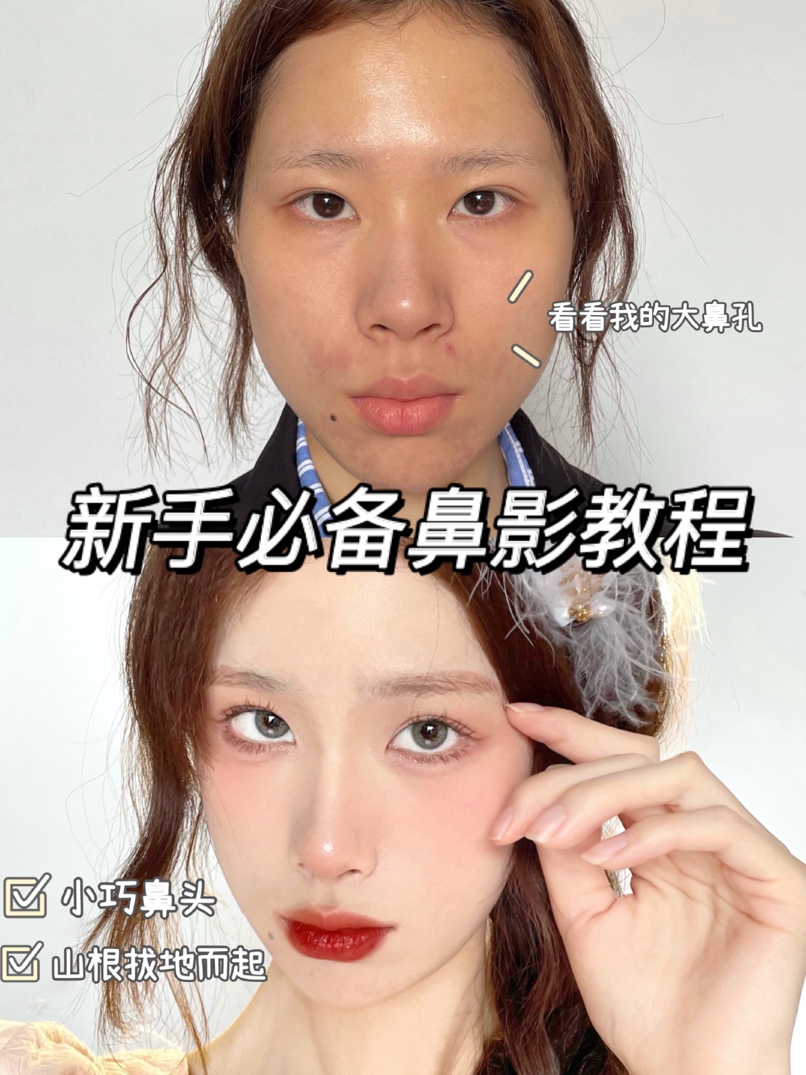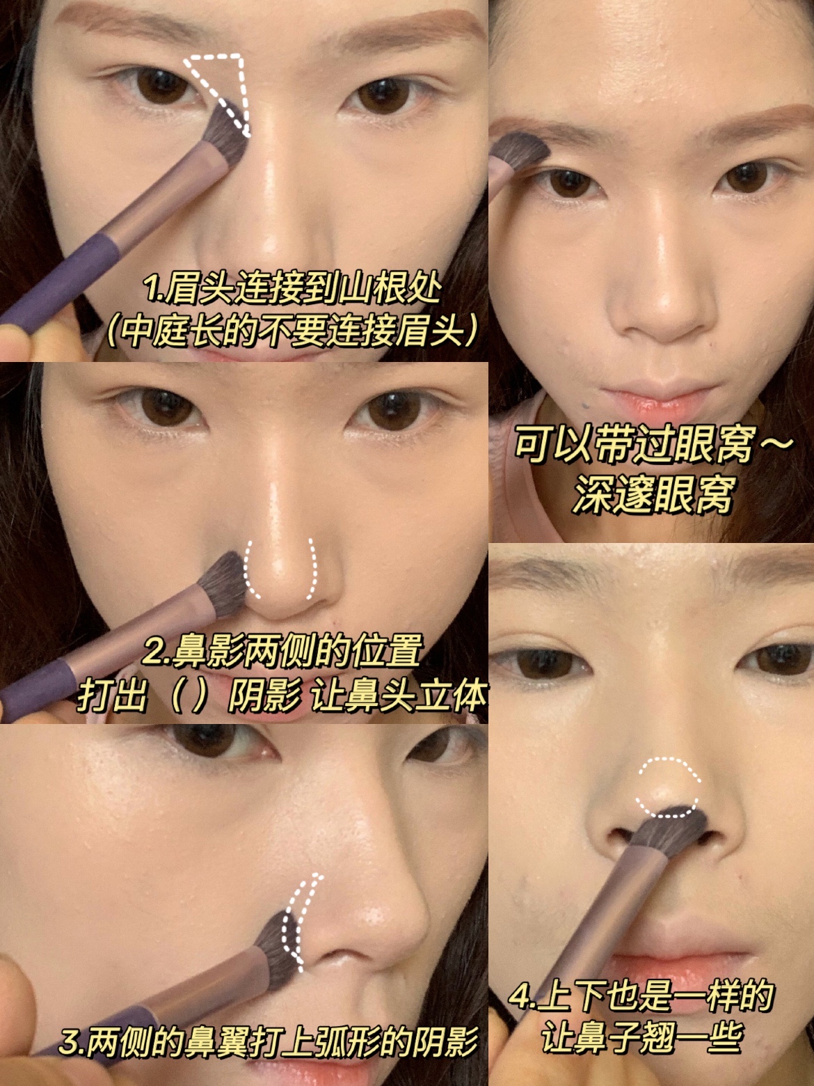 2⃣️鼻影两侧涂出 ( )形 让鼻头立体