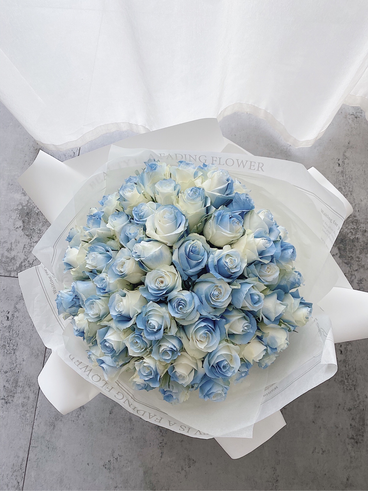 密西根碎冰蓝渐变色玫瑰,送给你的希望是星辰和大海🌊✨