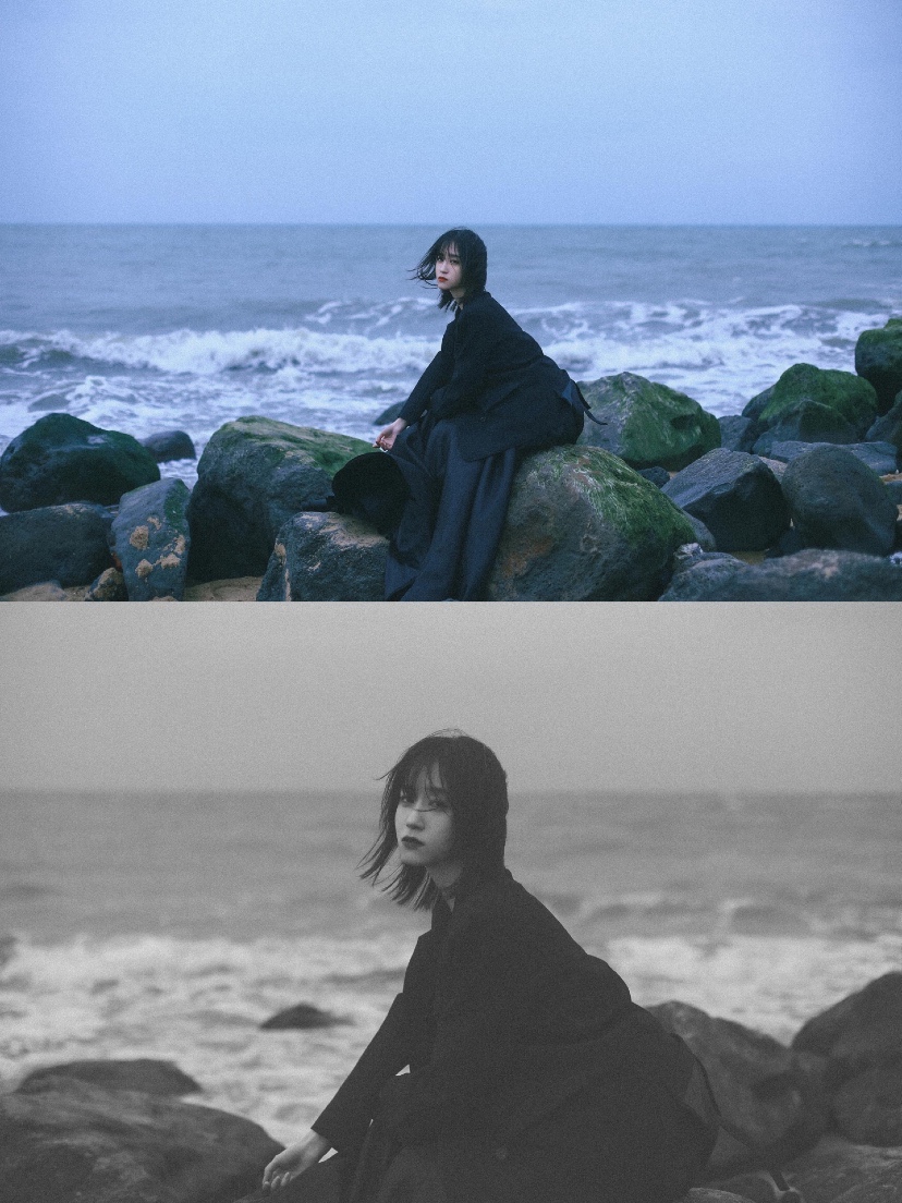 ✅阴天的海不会特别蓝 所以在相机前期上要调整好参数 色温低一些
