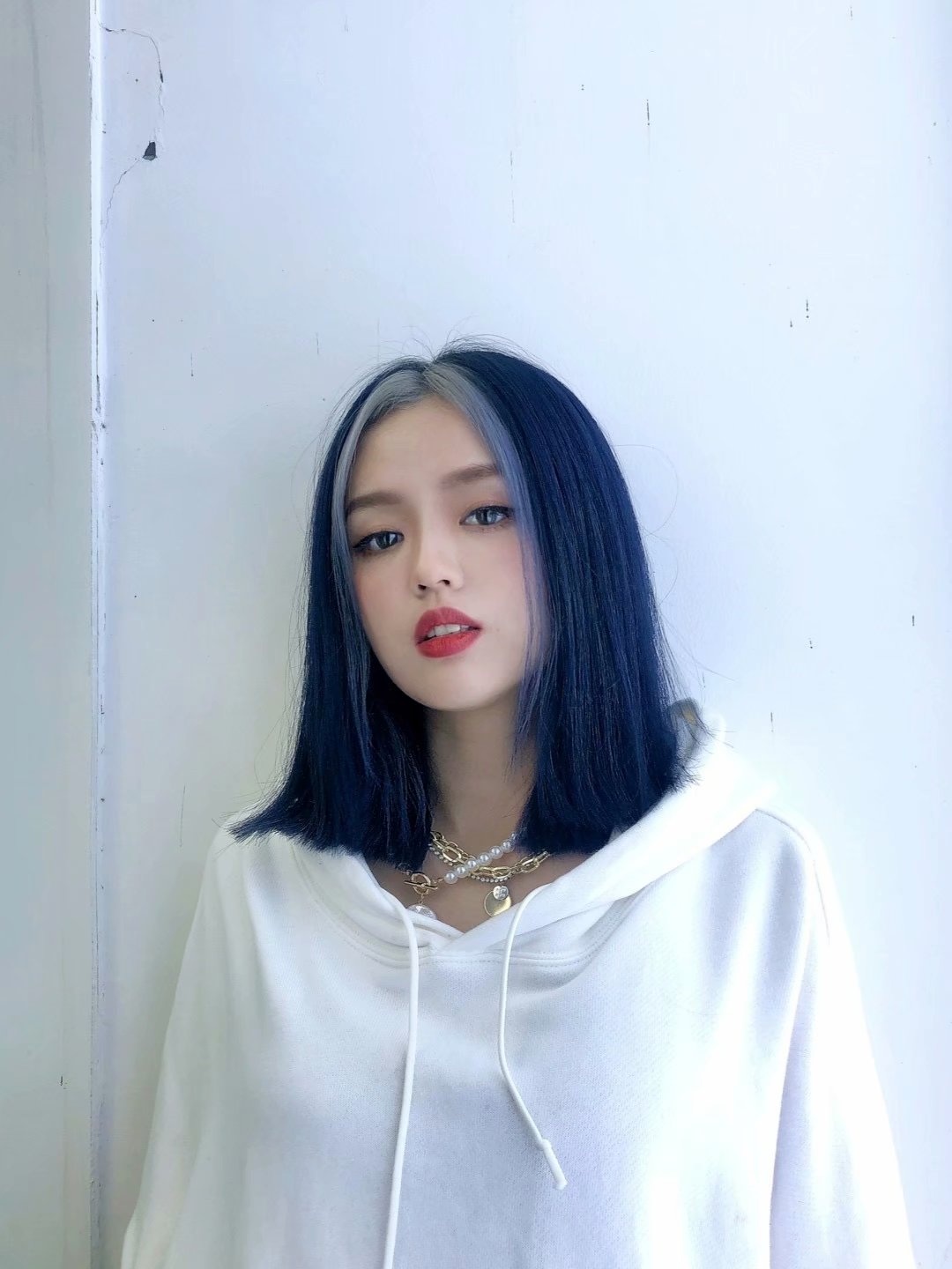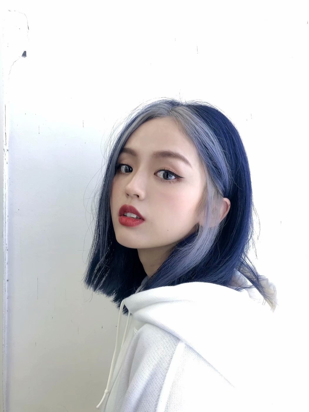 雾霾蓝加发带染米白色,超级显白非常高级时尚感加分!瞬间变成冷-美图社区-美图秀秀