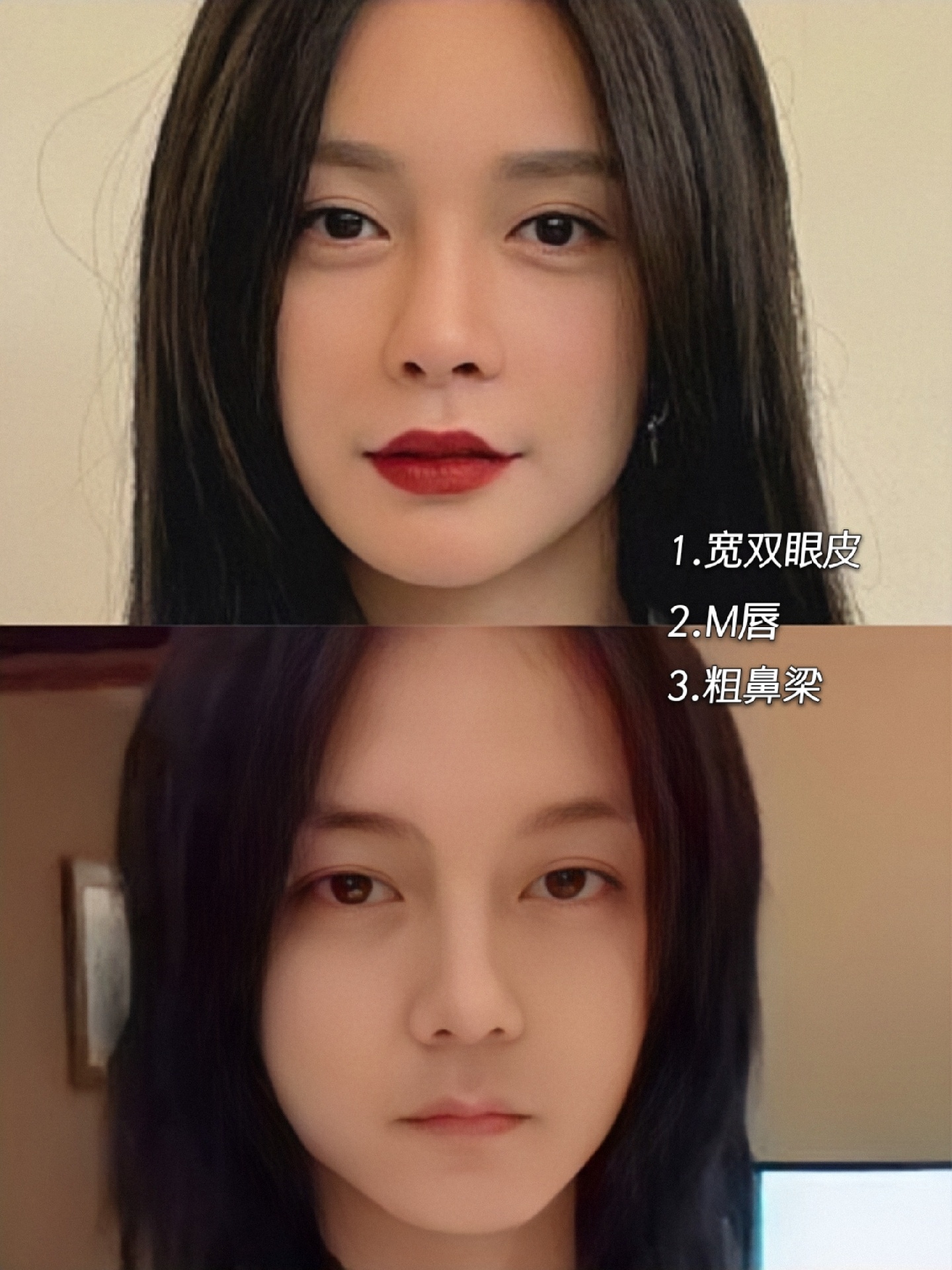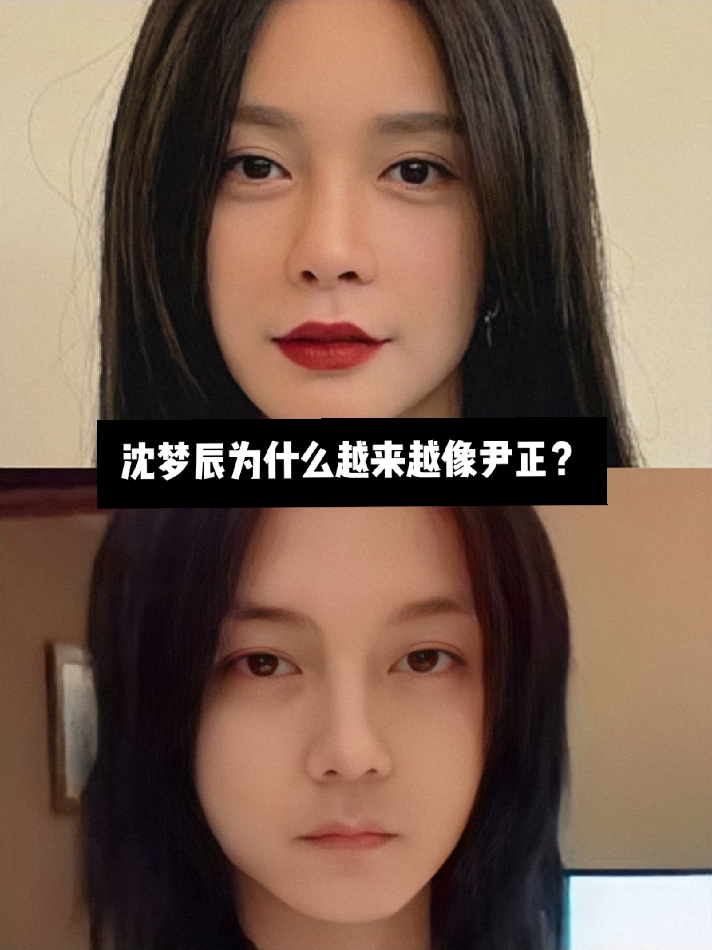 💛总结以上:宽双眼皮、M唇、粗鼻梁、眉眼距近、轮廓柔和,是两人比较相似之处。有时候看到沈梦辰,会觉得是长发的尹正。