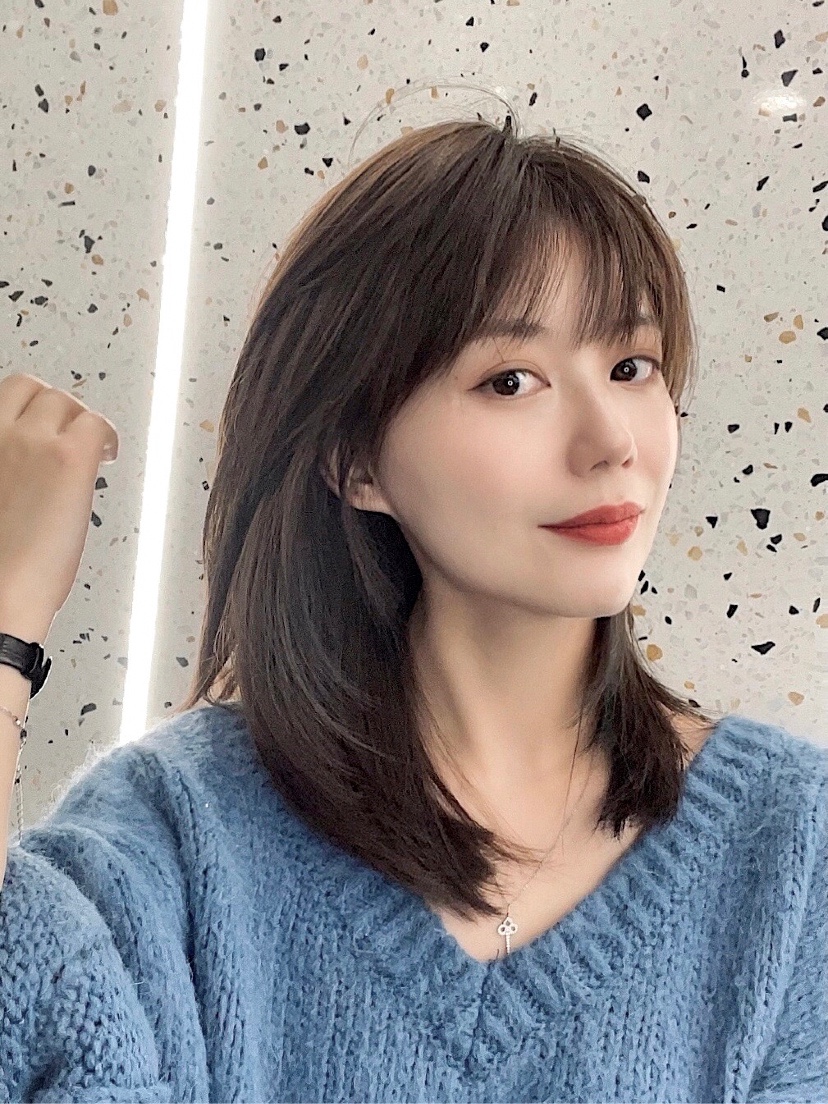 刘海有一定层次感、不厚不薄、可以很好的散发温柔小女生风格当然也可气质性感