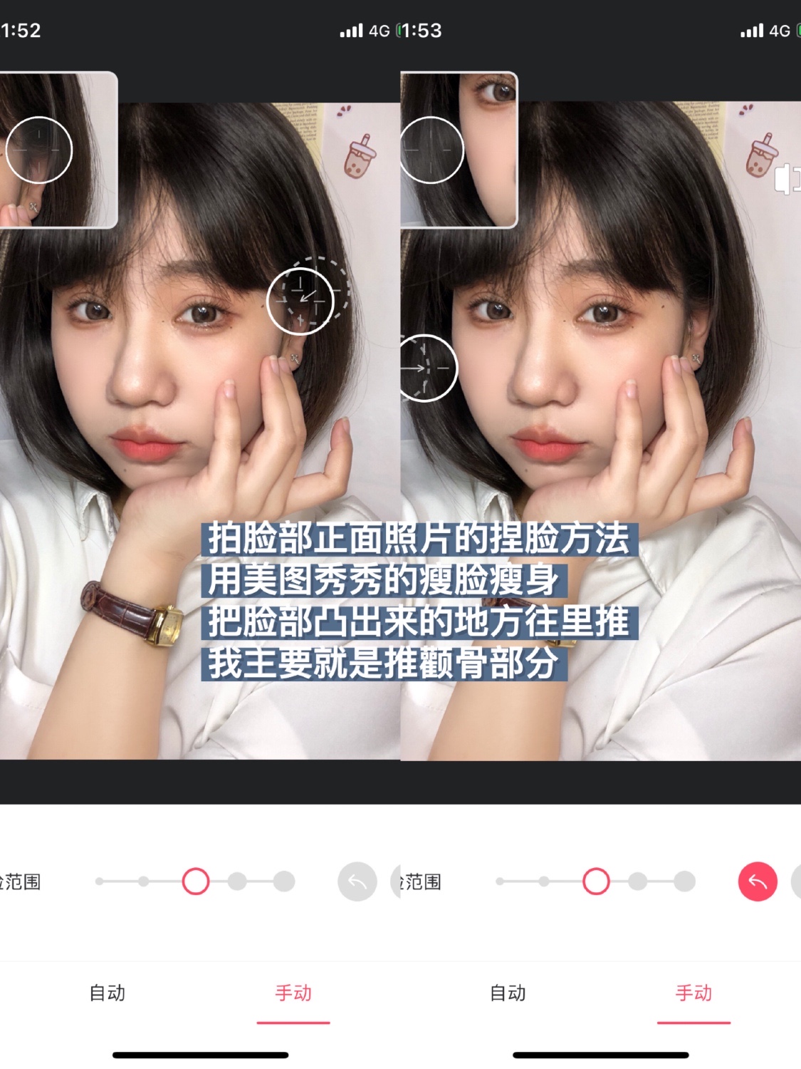 3️⃣然后用瘦脸瘦身 捏脸 脸部正面的照片主要是要修脸部凹凸的部分 如果颧骨高就往里推一推就可以 如果有凹陷的地方往外拉一拉