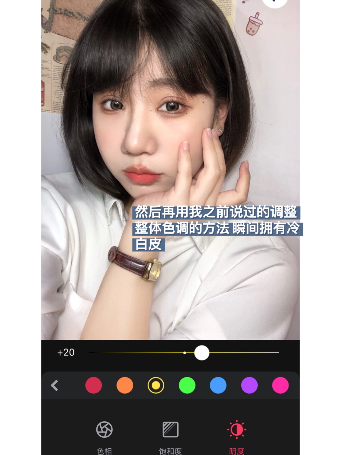 5️⃣最后用我之前说过的 调整hsl橙色黄色的亮度和饱和度 调整为冷白皮就可以啦