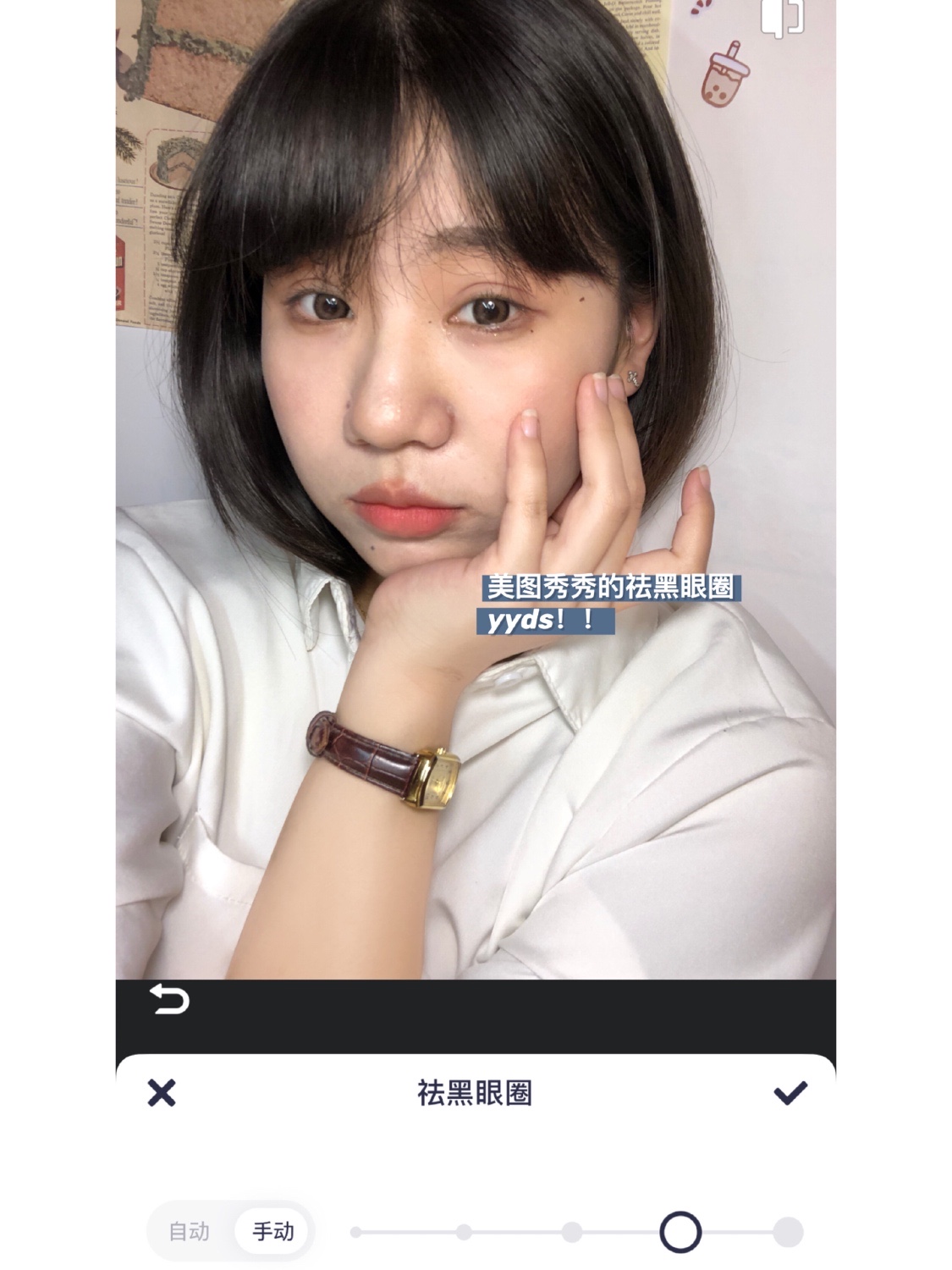 1️⃣先用美图秀秀的美容-祛黑眼圈