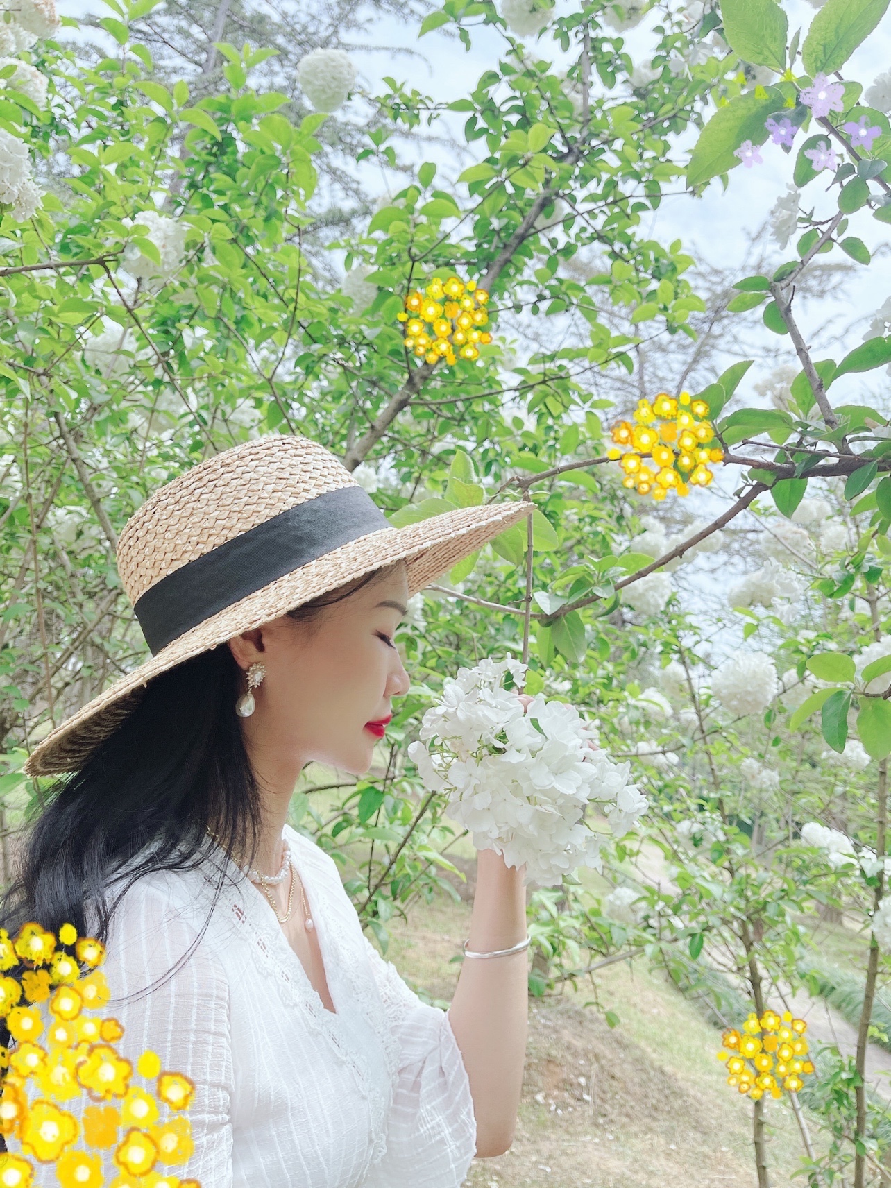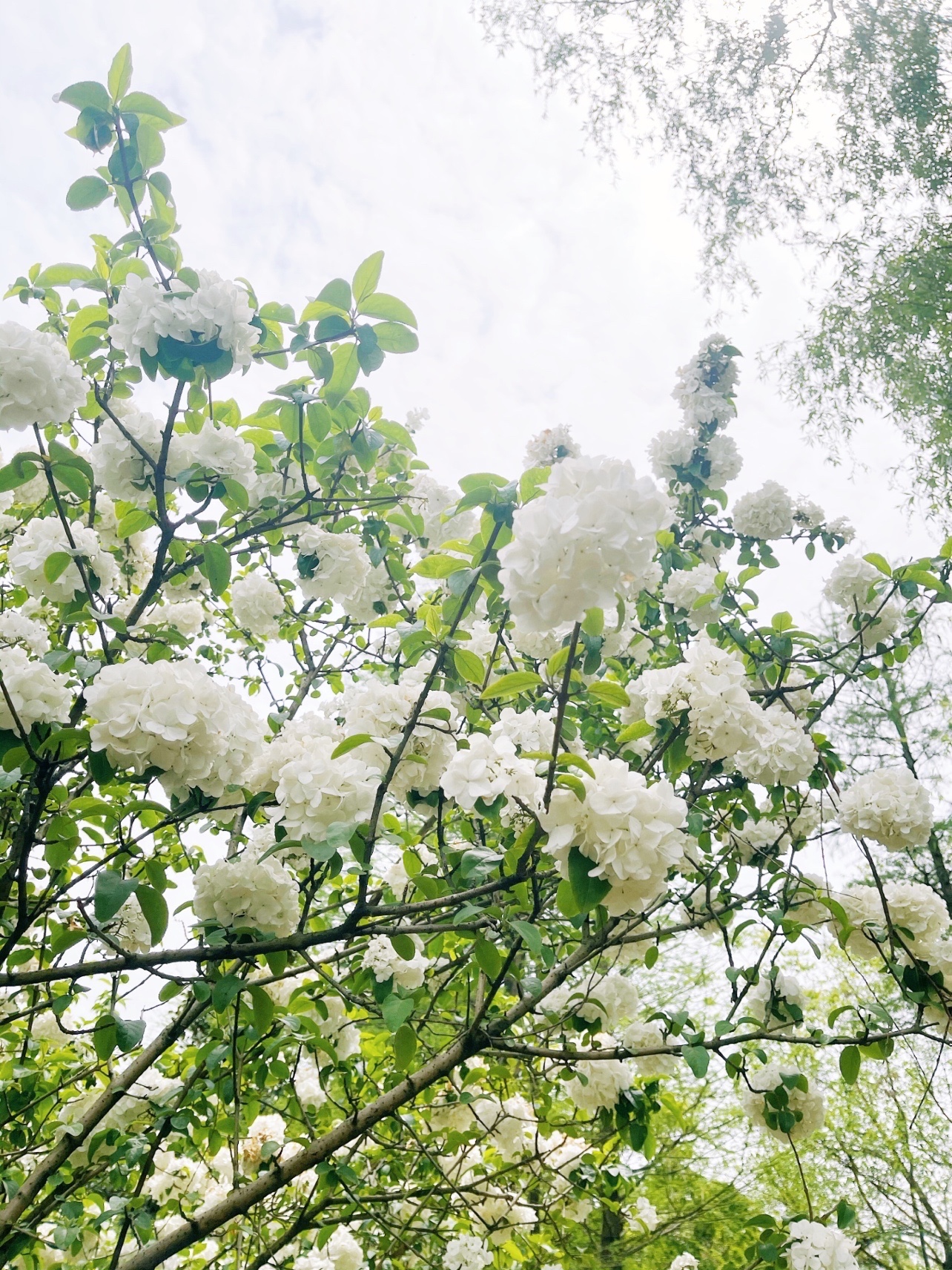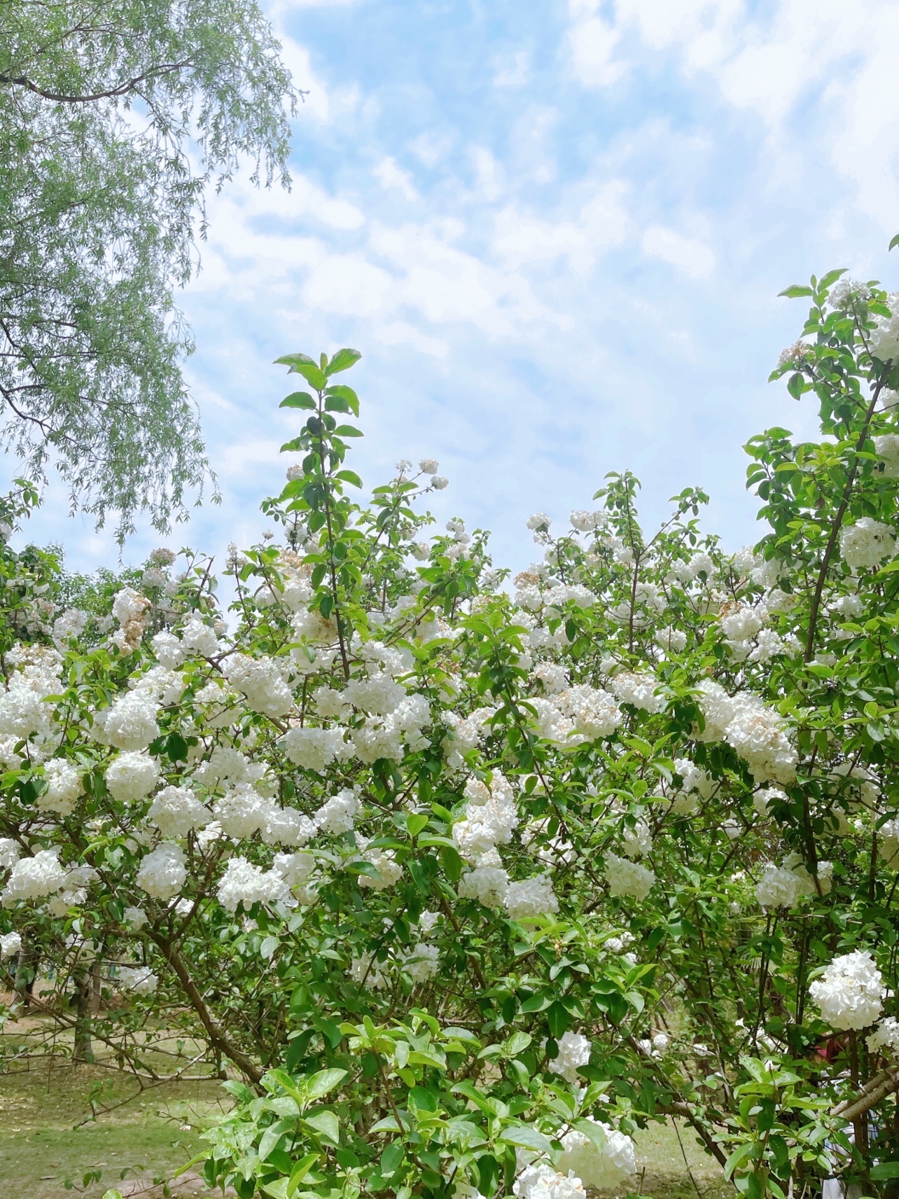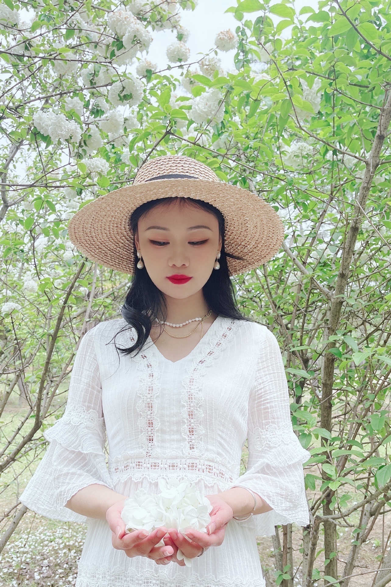 最近木绣球花大火,我也赶上了花期去拍了几张照片。手机拍摄,搭配白裙和绣球花呼应,很出片。