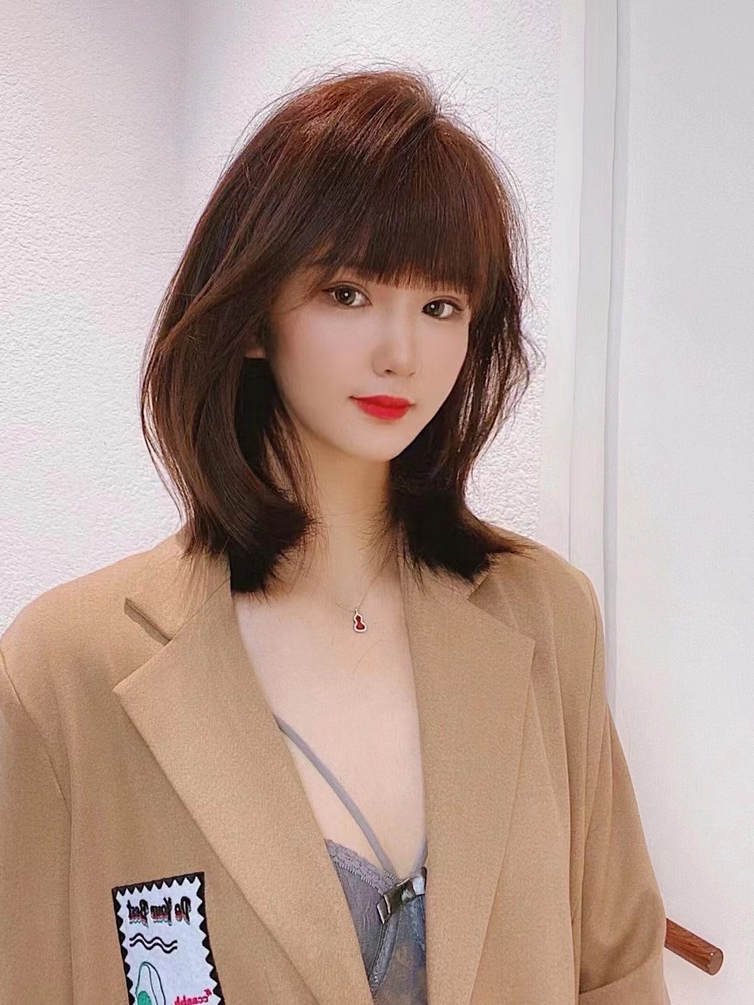 大刘海搭配、两侧的刘海微微进行了外翻、