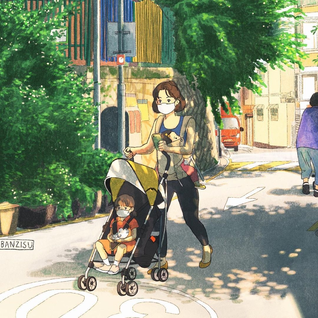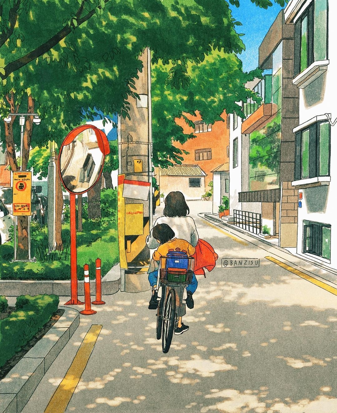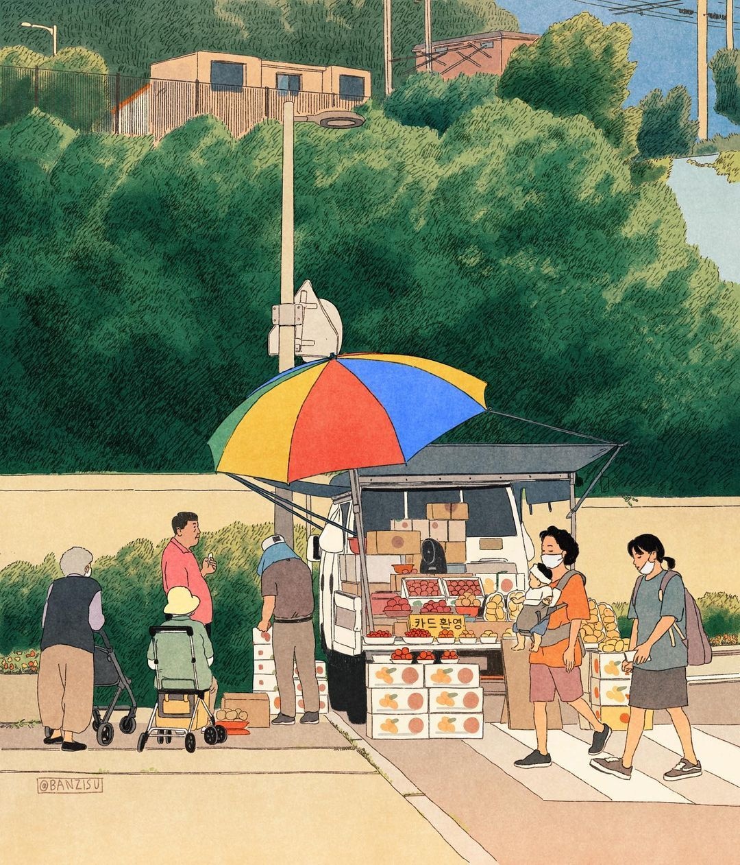 韩国插画师 banzisu 的九张市井长巷生活插画 ~