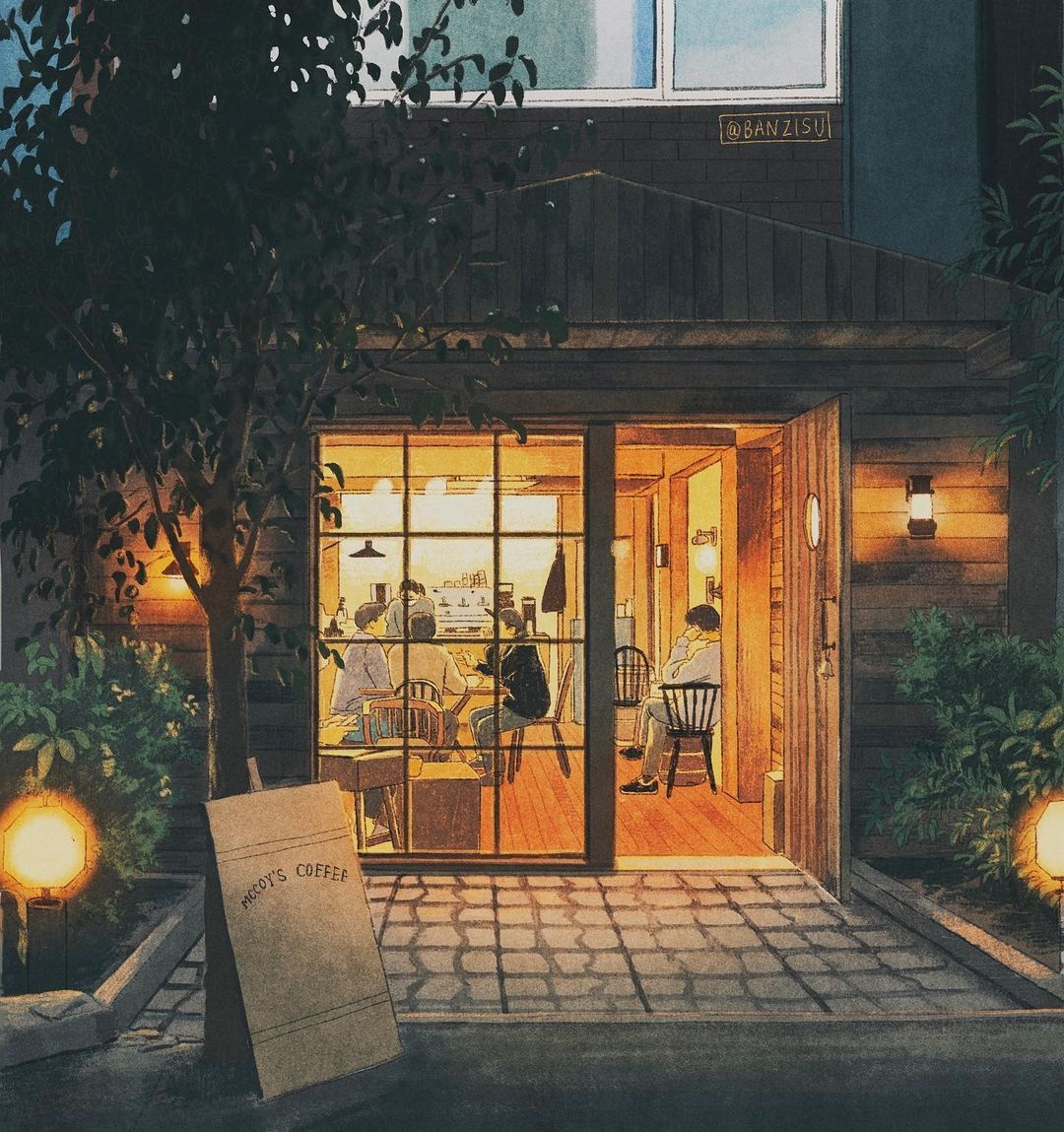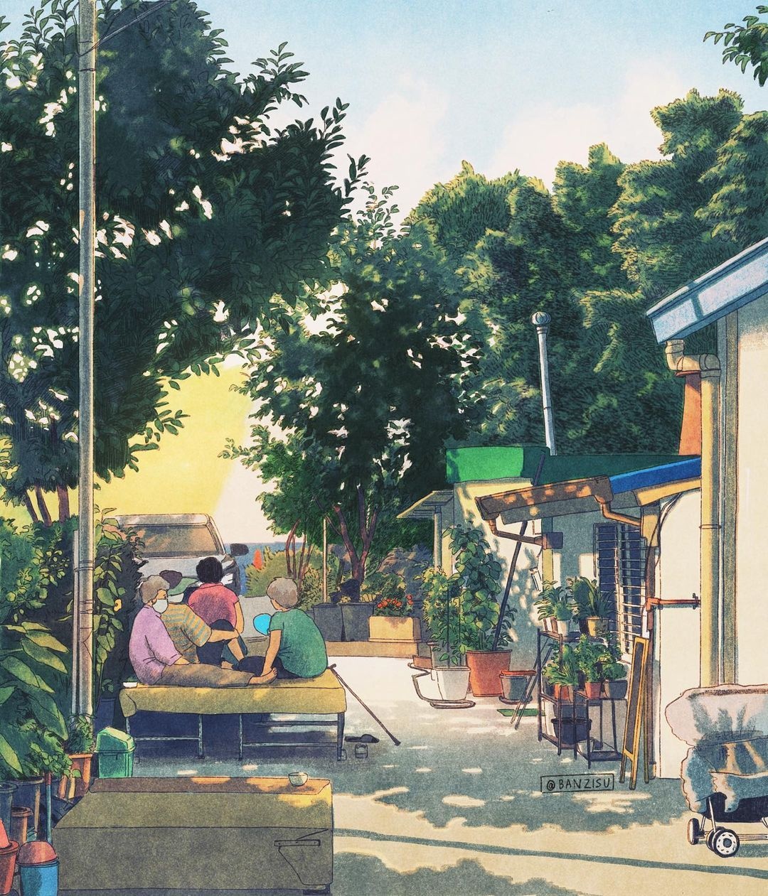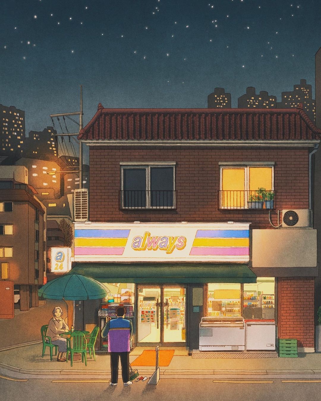 韩国插画师 banzisu 的九张市井长巷生活插画 ~