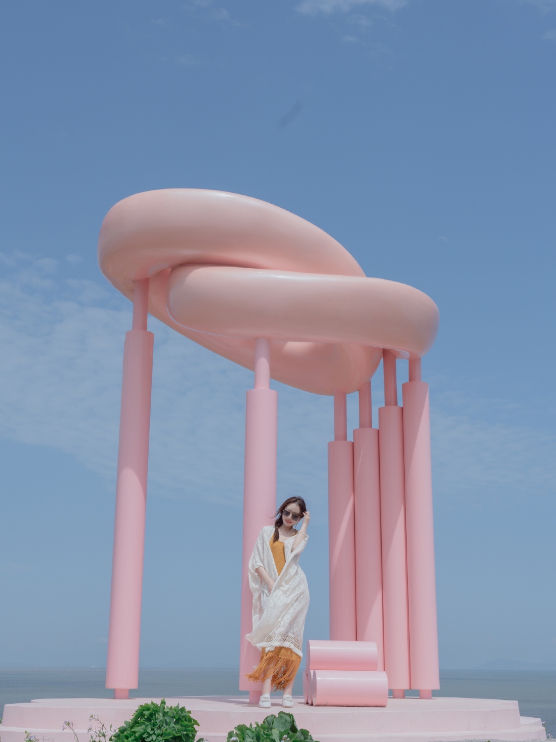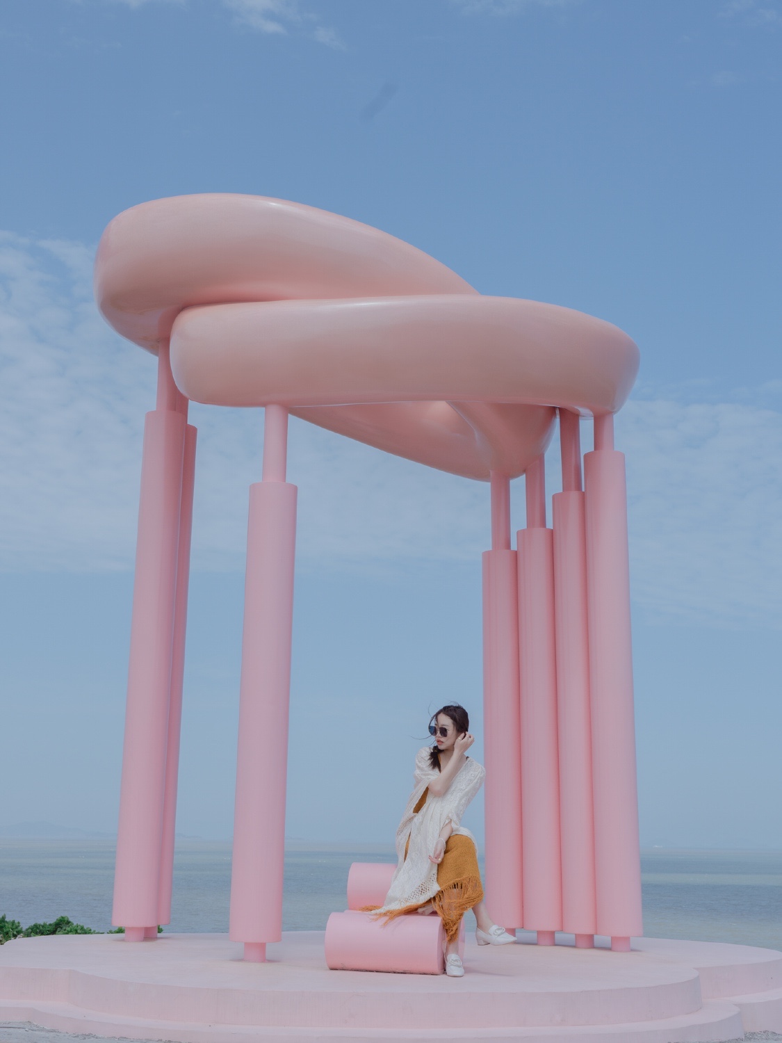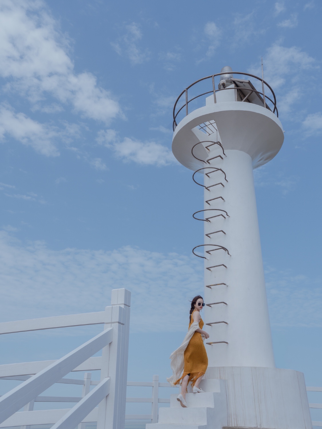 可以到黄龙岛用餐,之后沿着公路就能走到山坡上的灯塔,灯塔旁边新修了网红打卡点小粉~