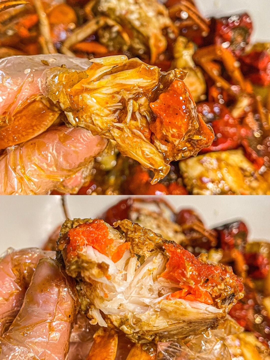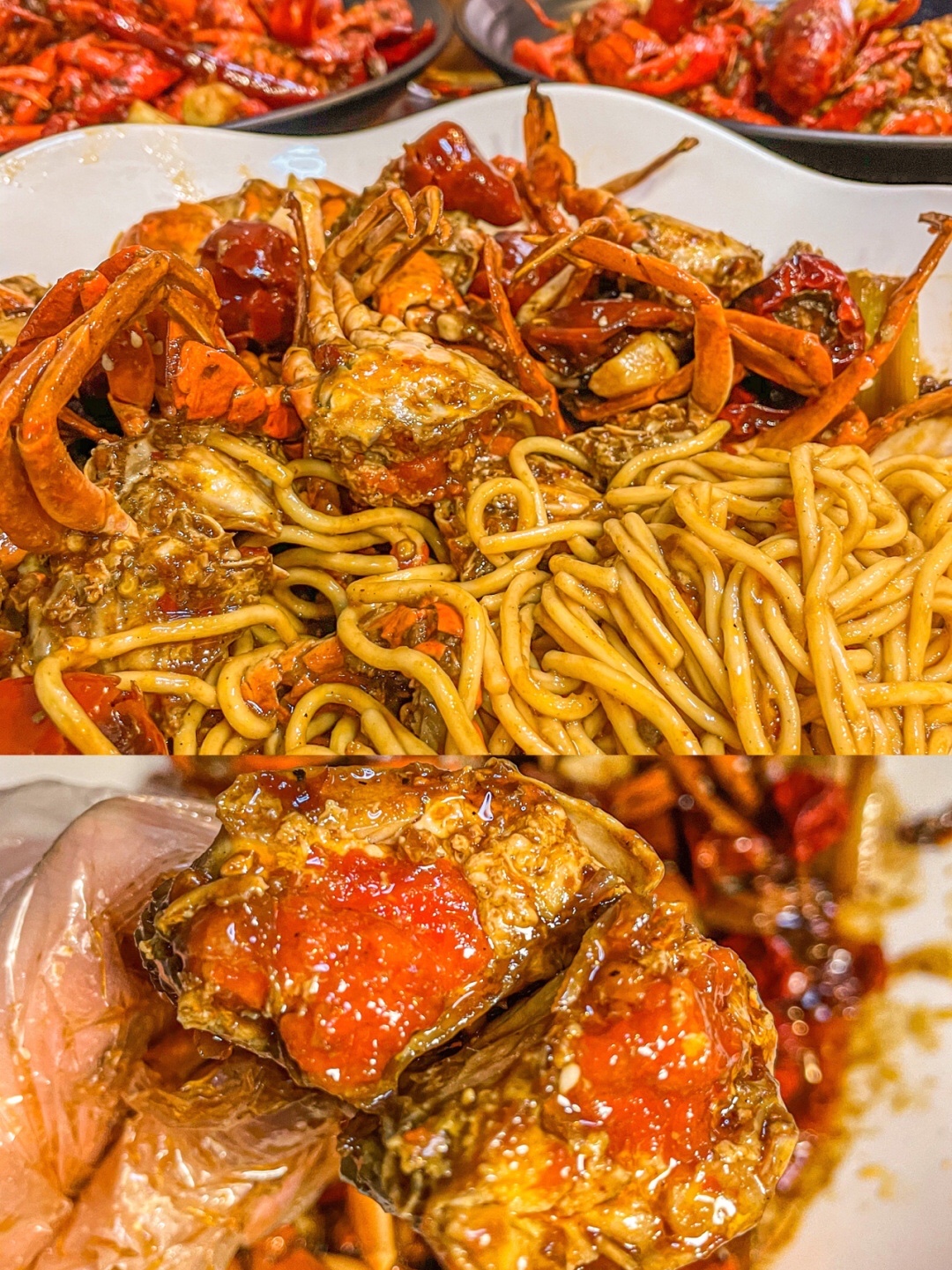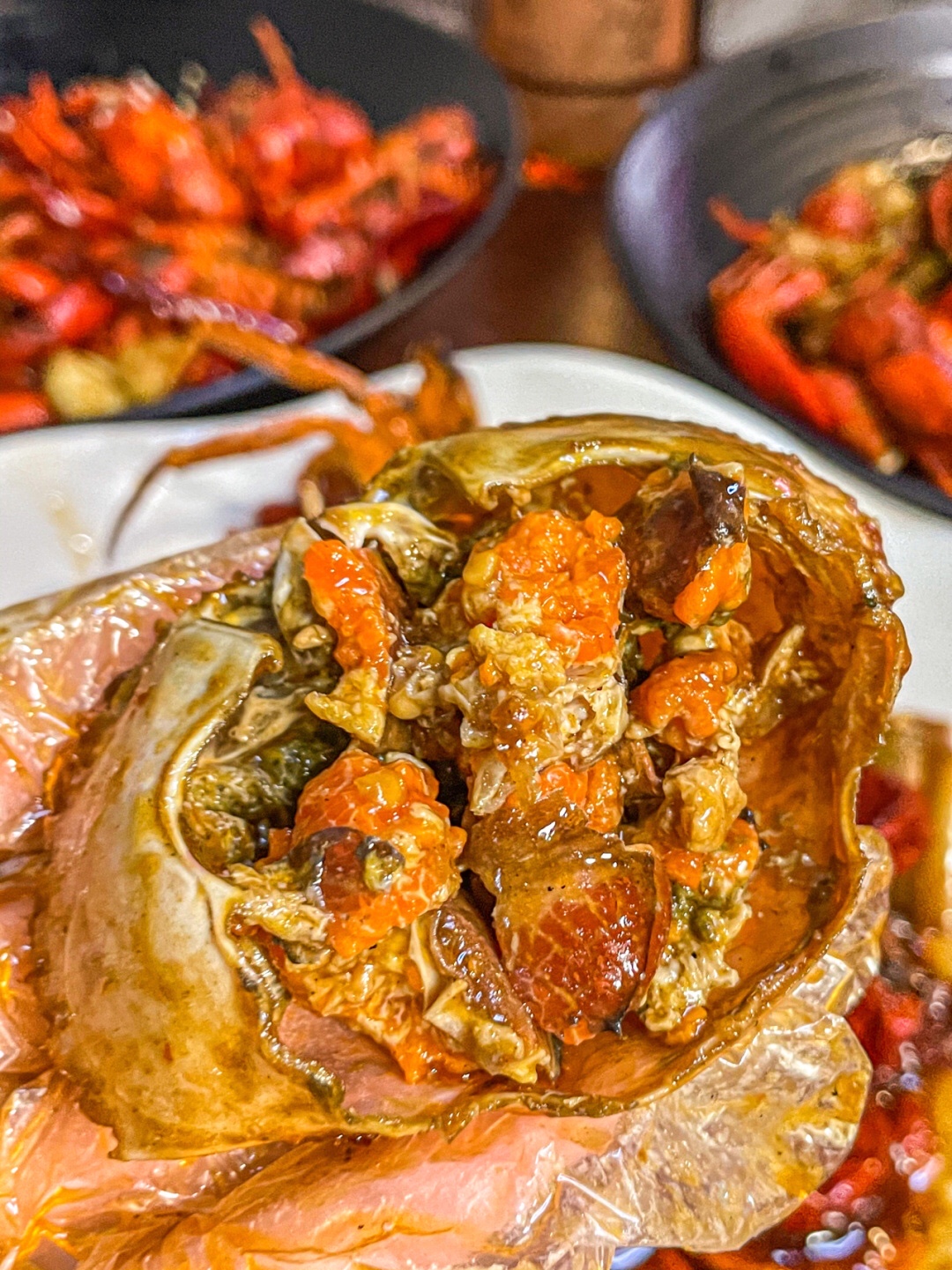 秘制酱汁真的好香,吃完都要吮手指的程度哈哈哈~ 蟹膏金黄量还足,吃着超爽!