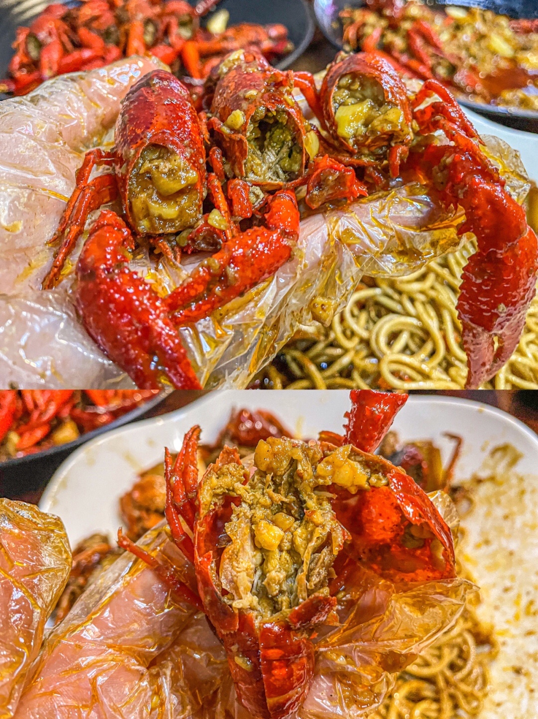 老板娘教我要吸虾头,他们已经事先剪好了(图8⃣️),我简直打开了新世界的大门…感觉以前的小龙虾都白吃了!原来虾头才是精华!