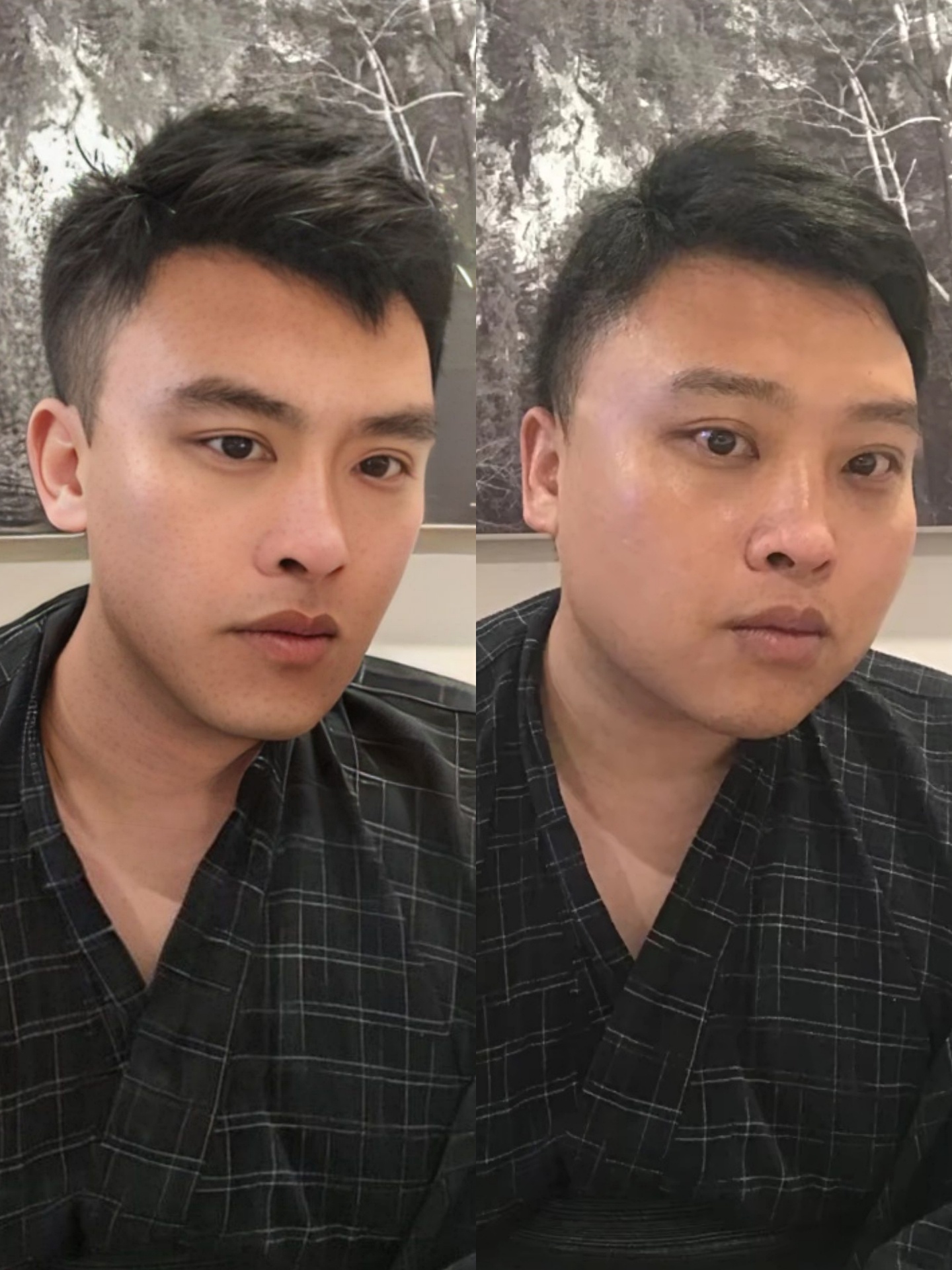 男生额头较宽、脸型较长、眉毛较浓、眉眼距离较近、眼高较短,肤色较黑、脸上带点瑕疵更有男人味