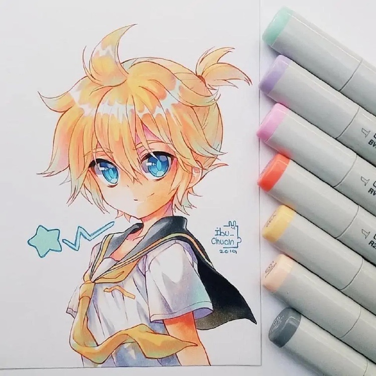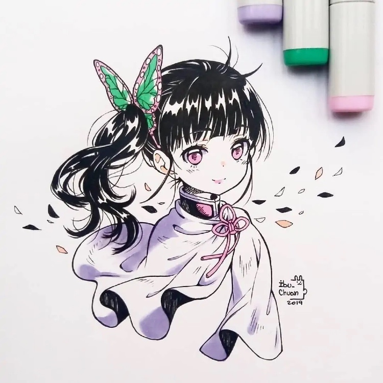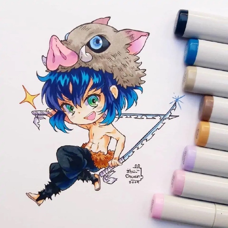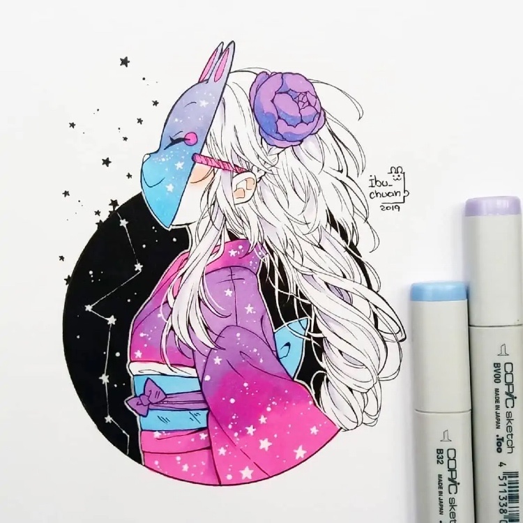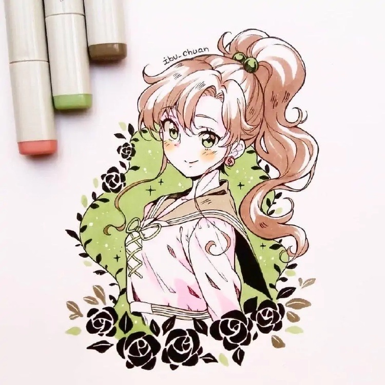 画师ibu—chuan使用马克笔绘制出动漫角色,即便是没有那么多颜色调剂和混合,这位画师依旧能画出栩栩如生的人物,关键在于在绘画方面所体现的绘画功底。