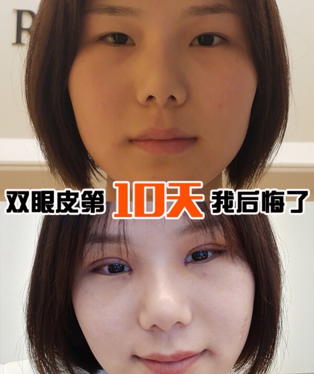 术后10天的时候,双眼皮已经消肿非常多了,不影响看到手术效果,双眼皮的弧度以及宽度都非常合适,眼睛增大了很多,再也不是传说中的眯眯眼啦#做的双眼皮能自然到什么程度
