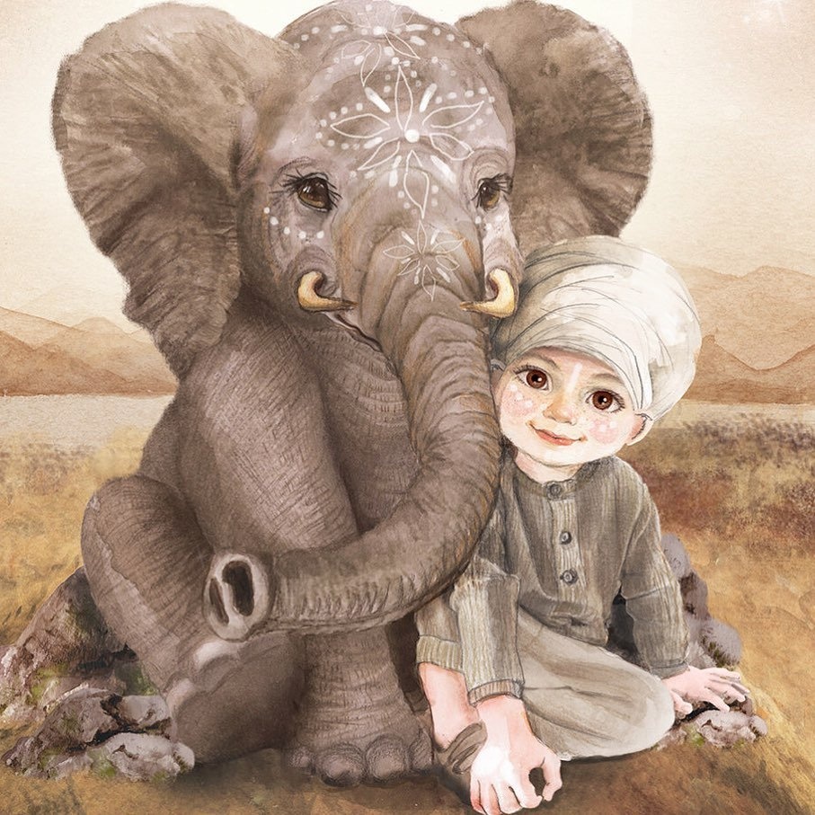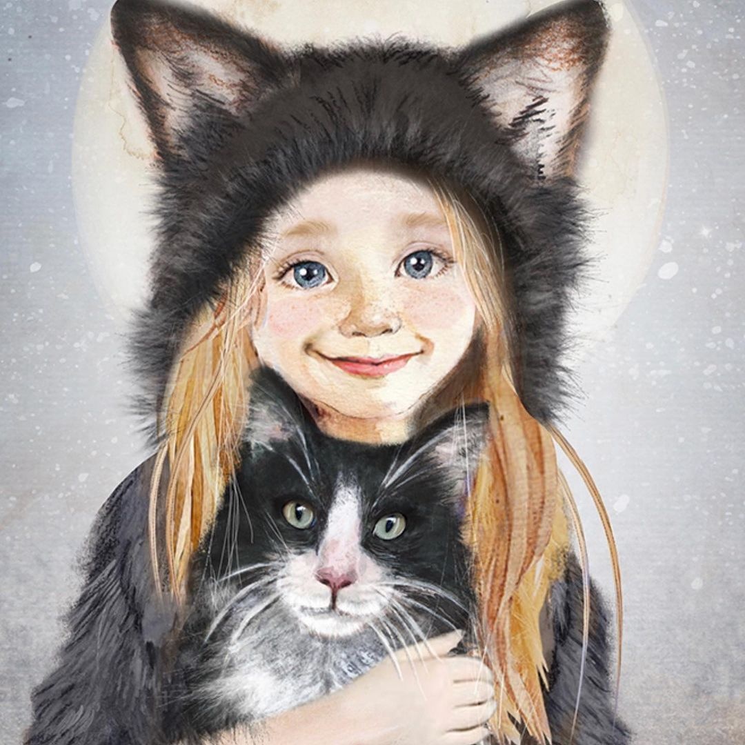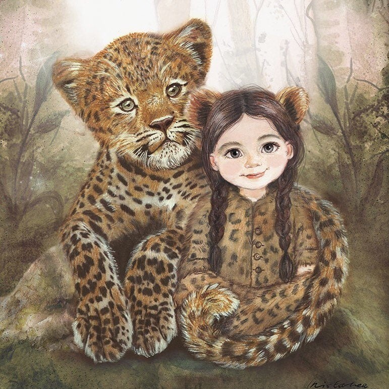 《孩子和动物主题插图 》