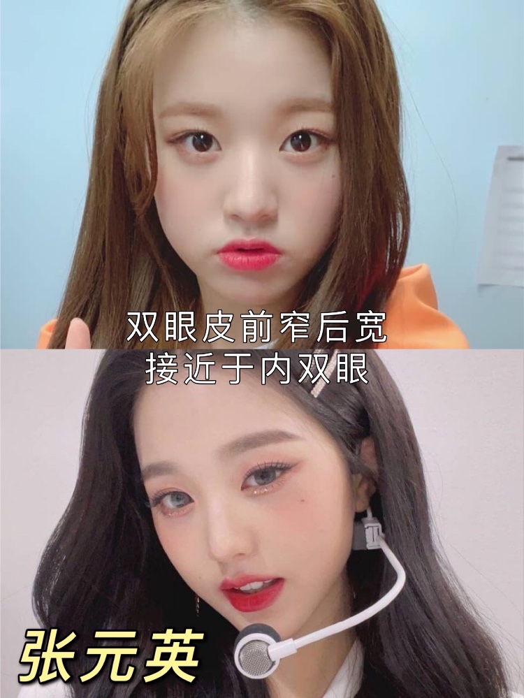 最近发现了几个窄双眼皮也很好看,比如说韩国的张元英、田姬振、赵美延,还有中国的Angela baby双眼皮都是窄窄的,并且眼球暴露程度充分,眼睛又有神,是不是看起来比又宽又深的双眼皮自然高级很多。