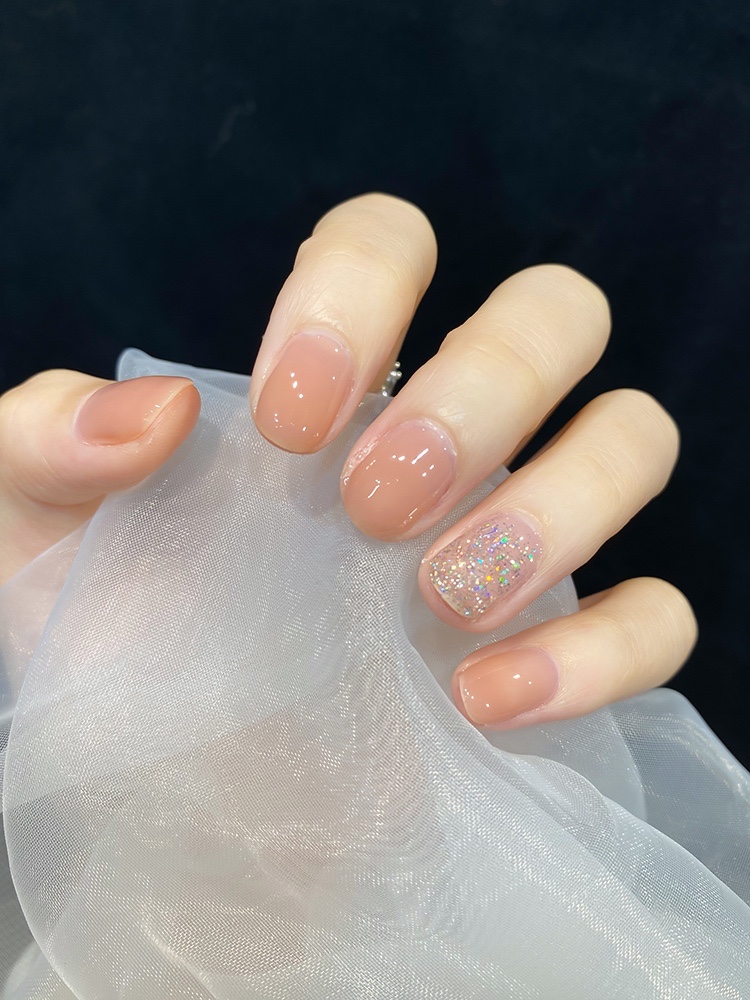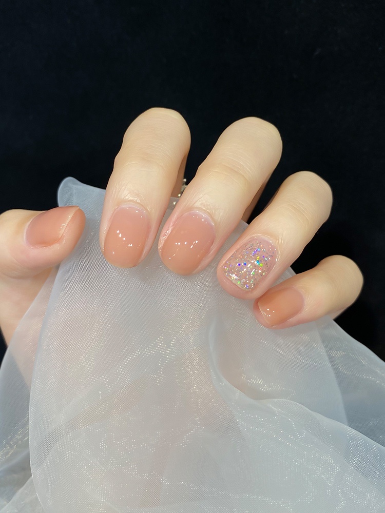 通透的琥珀裸色美甲真的是太高级了,日常美甲使用率100%,超级温柔低调,加上无名指用的跳色彩花银的甲油,超级nice,学生党,上班族的仙女都可以安排上哦😽