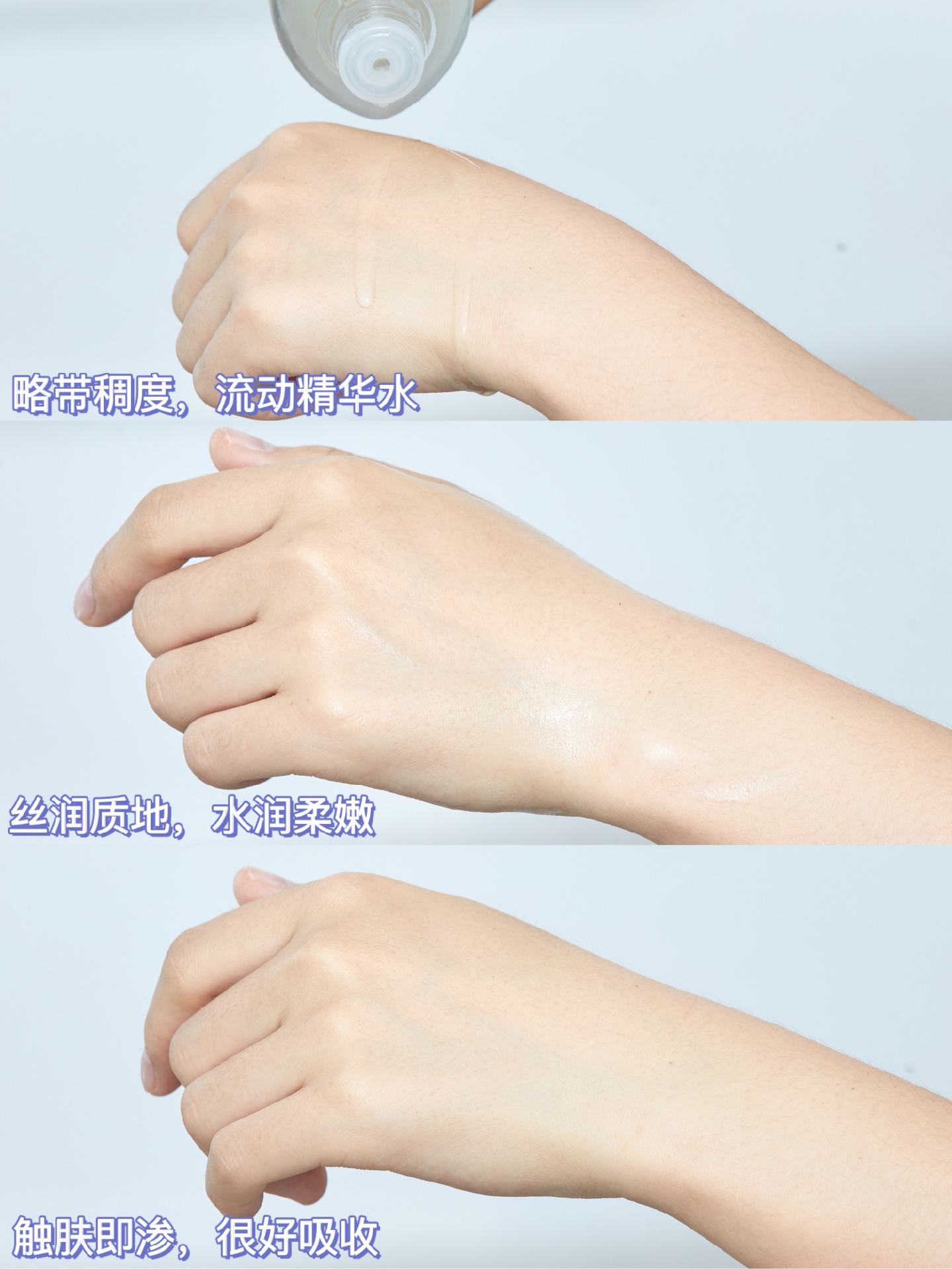 清润不腻,皮肤瞬即转干为润!满水满光!