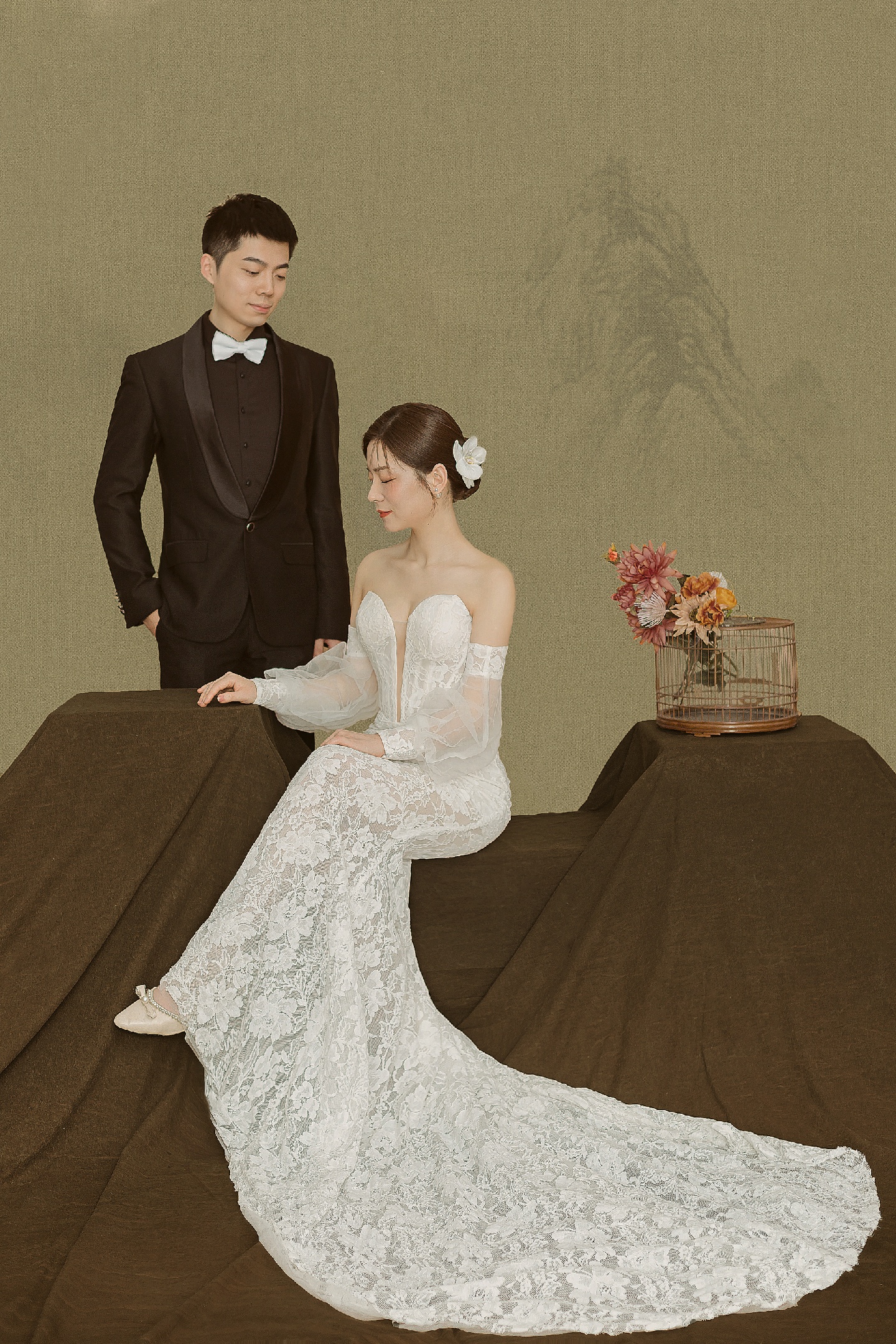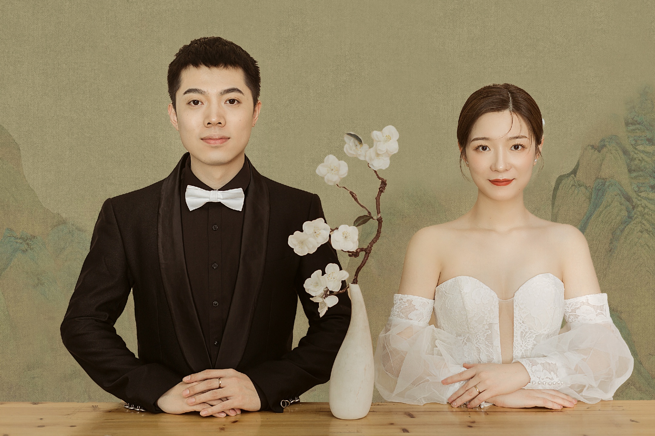 工笔画国风婚纱照
