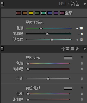 浅绿色:色相➖38 饱和度➖8 明亮度➕13