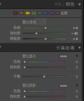 绿色:色相➕4 饱和度➖42 明亮度➕4