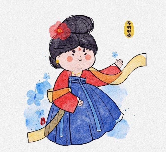 这位汉服少女如此富泰,绝大可能是唐朝的。物品们都知道唐朝以胖为美,而且唐朝是穿这种款式的衣服的,妆容也很唐朝,尤其是眉毛、腮红、额头花钿都是代表性装饰。