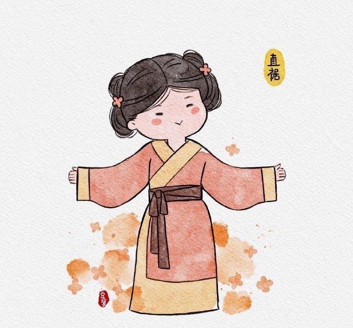 是华夏衣冠体系中的一种,其短者谓之裋褕, 衣襟裾为方直,区别于曲裾。直裾袍可分为交领直裾袍、圆领直裾袍、直衿直裾袍。看上去方方正正,也比曲裾省不了,看上去简约。