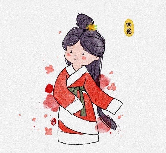 曲裾,读音qū jū(音似"屈居"),可以直观理解为一种续衽绕襟的服装。秦汉时期常见服饰,特别有古典美,尽管穿上后行动不太方便,但是能展示华夏的礼仪美。妇女和男士都可以穿,现在看来这种款式的汉服还很有鱼尾裙的风格。