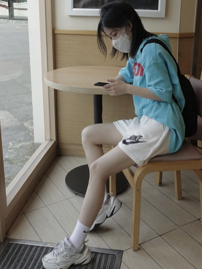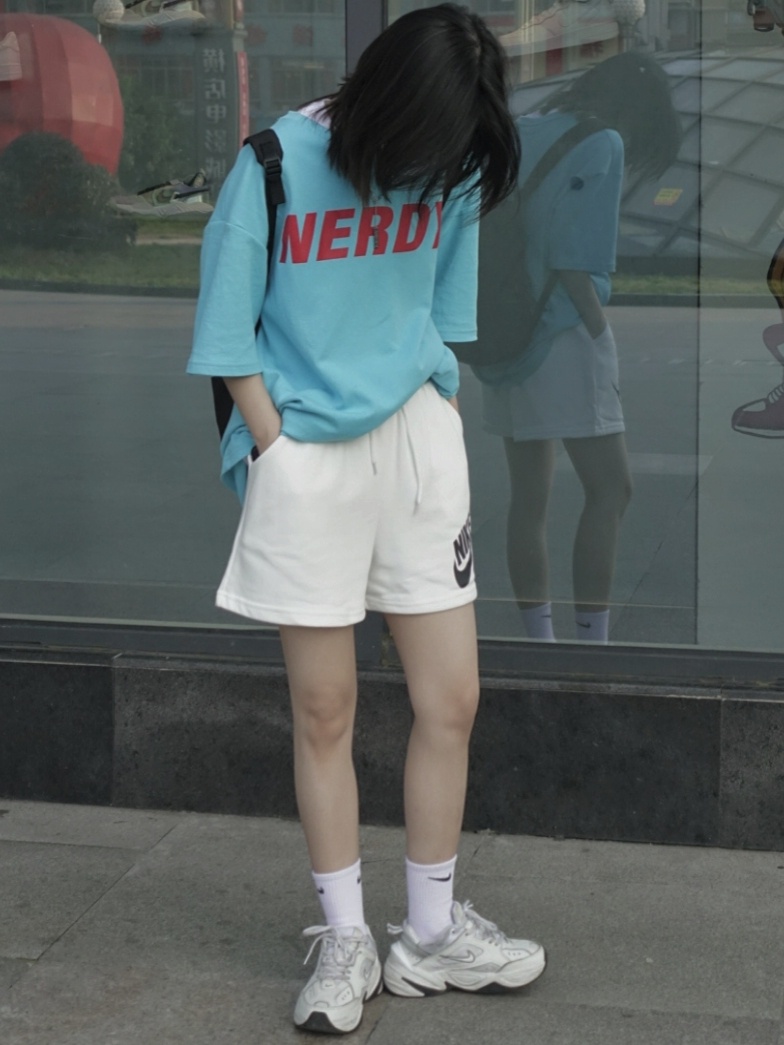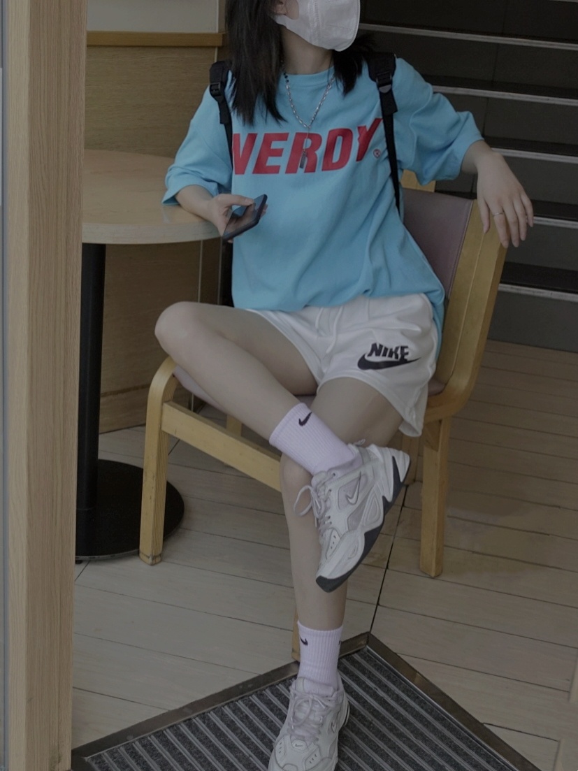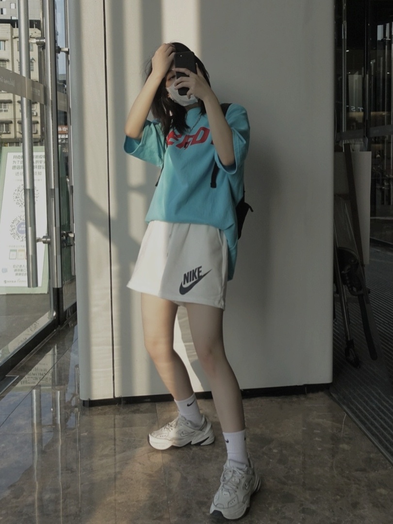 搭配白色短裤老爹鞋还有双肩包