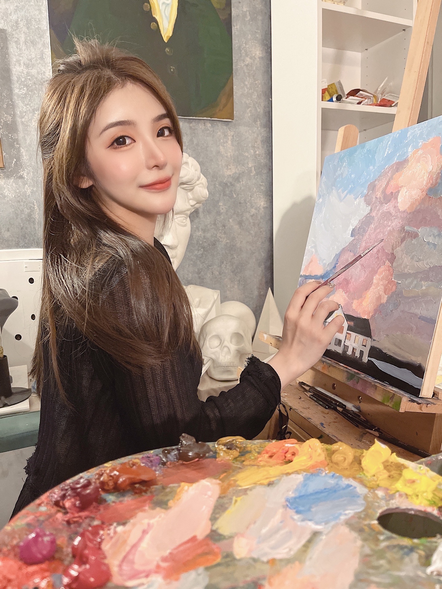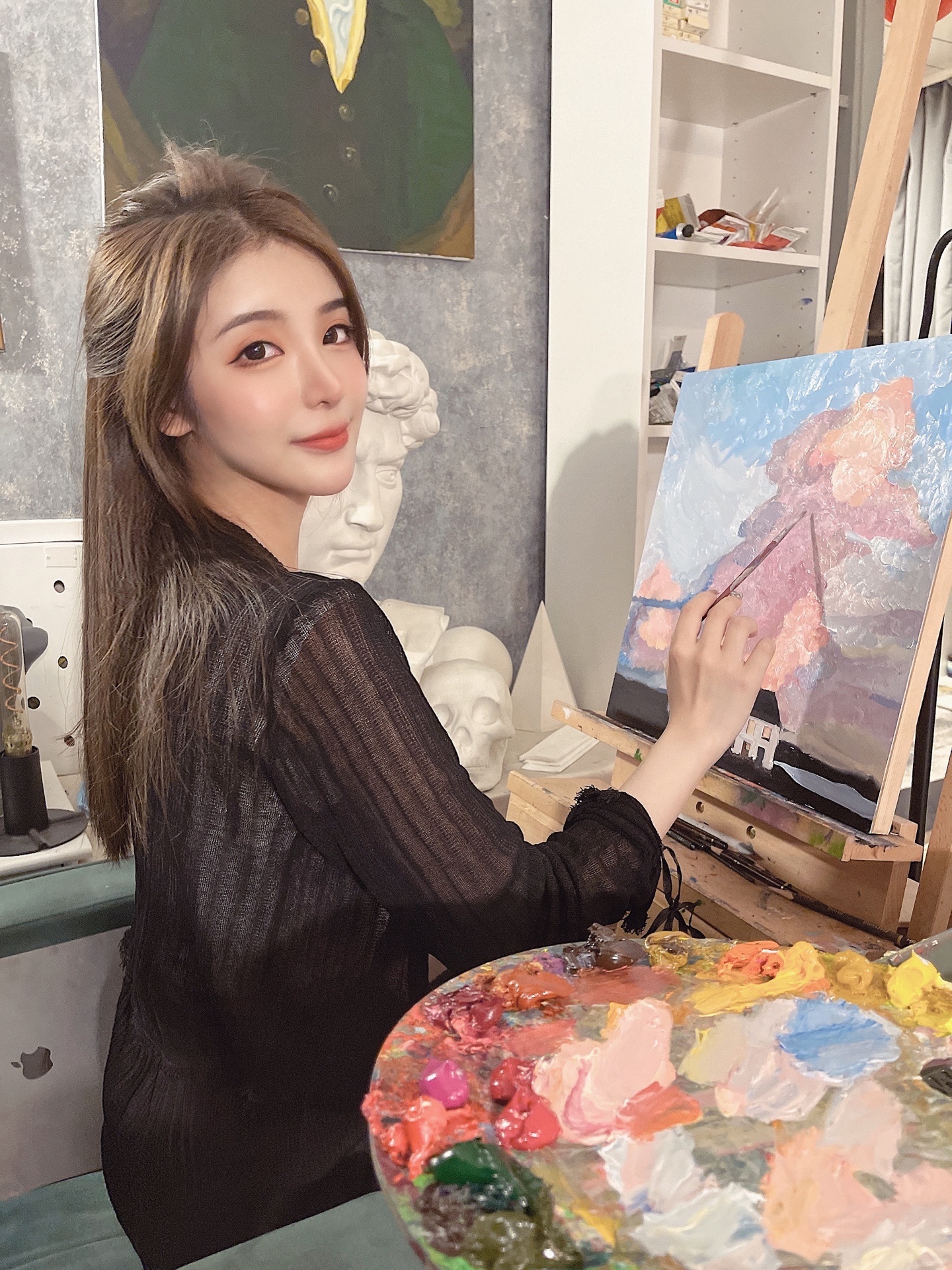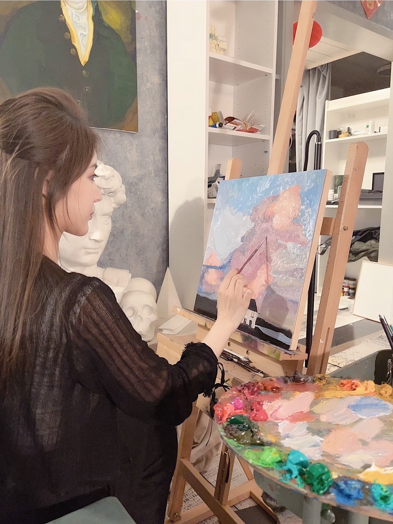 画好基础 就可以逐渐上色🎨 由浅到深 油画好在画错也没关系 可以修改调色调回来 天马行空 大胆去画