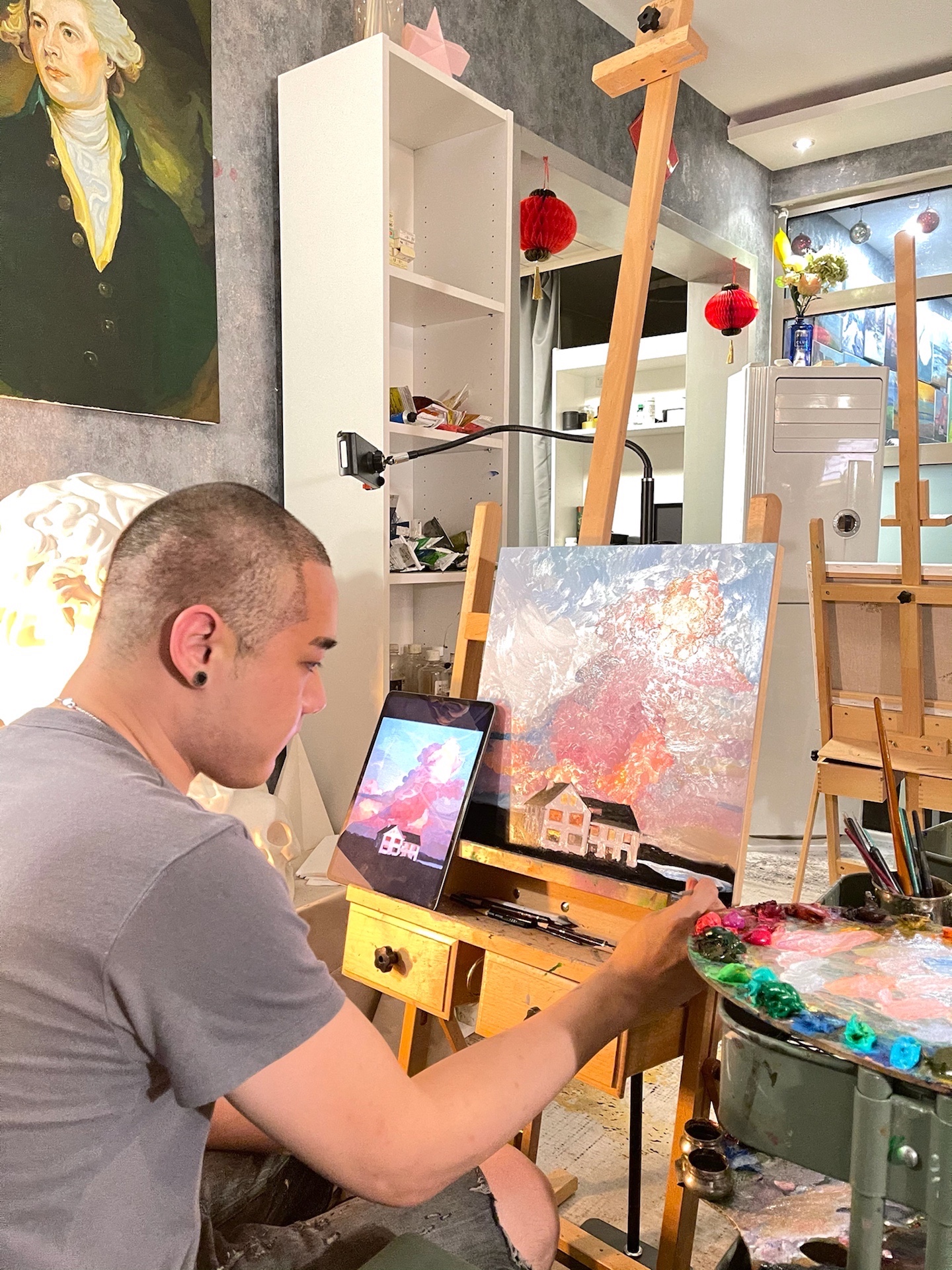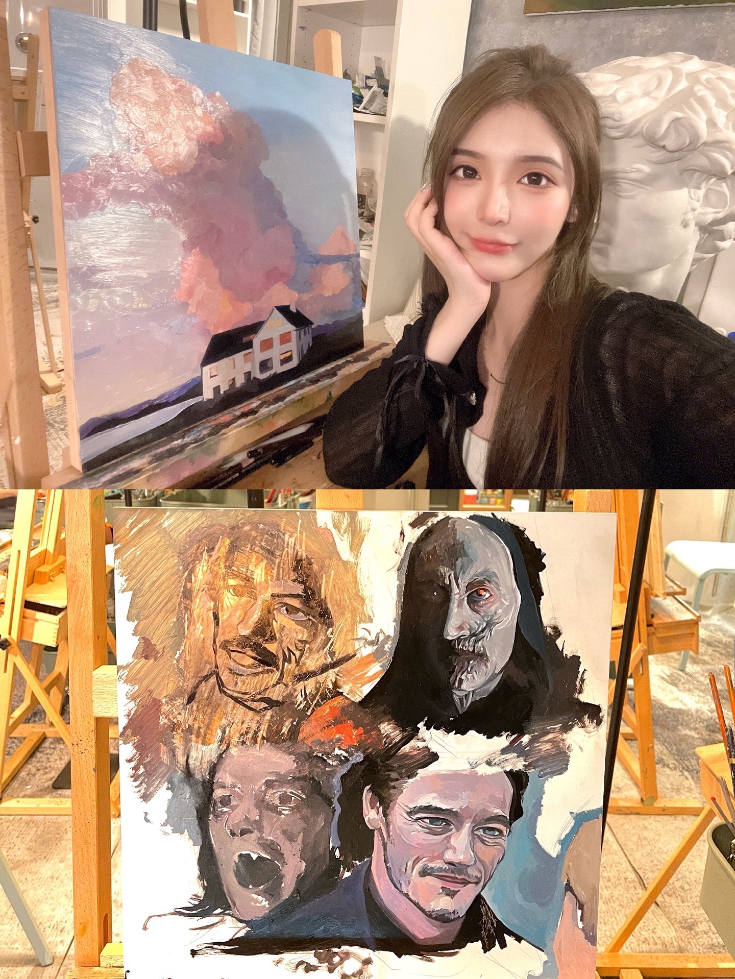 这次来到这家宝藏画室 老板实在太nice啦 又耐心又温柔 还长得帅气😛 店里有好多老板的作品 才华横溢 迫不及待的想画画