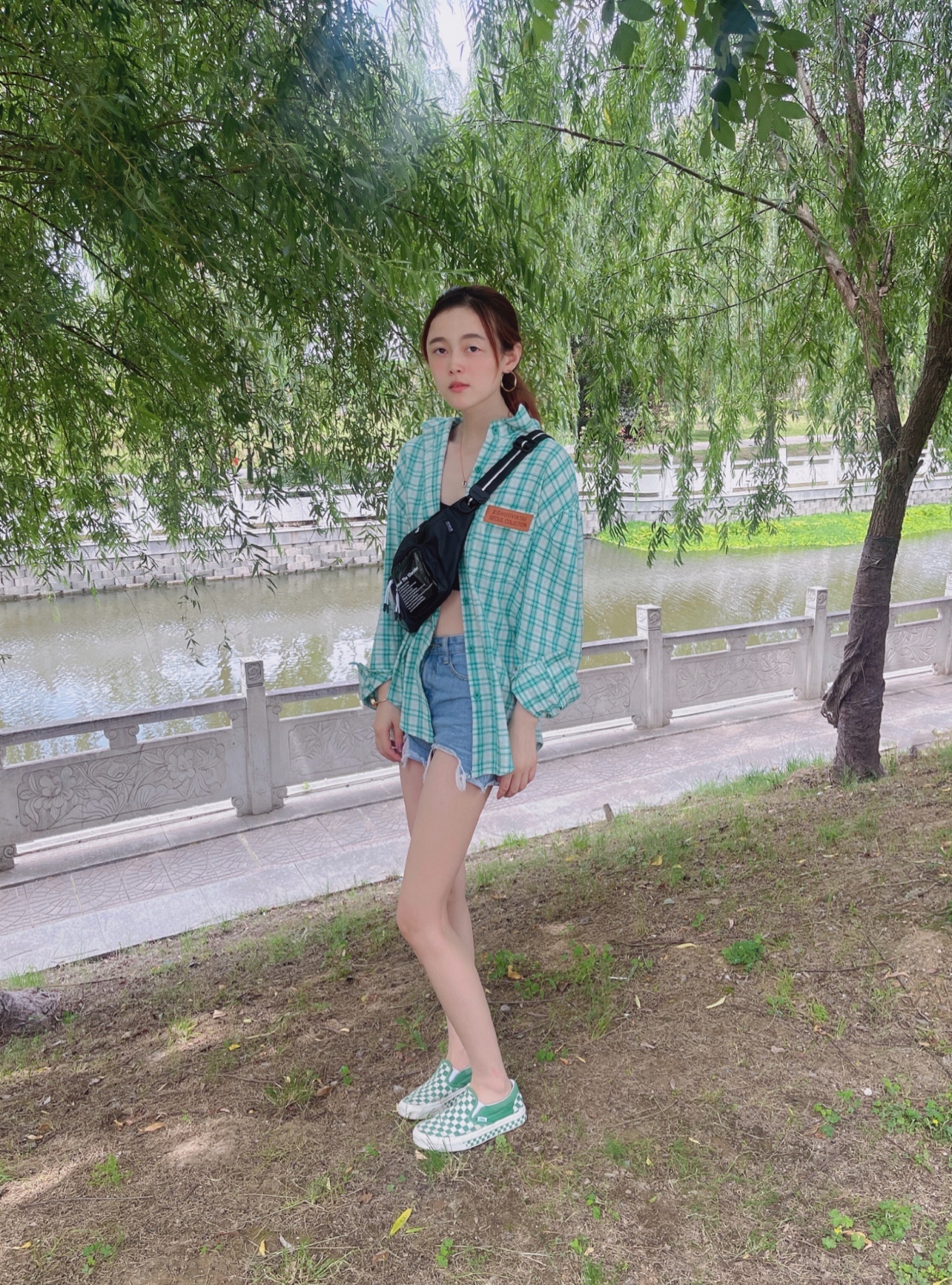 最爱的帆布鞋品牌之一,为了和上身绿色衬衫起呼应的作用我选了一双绿色的~