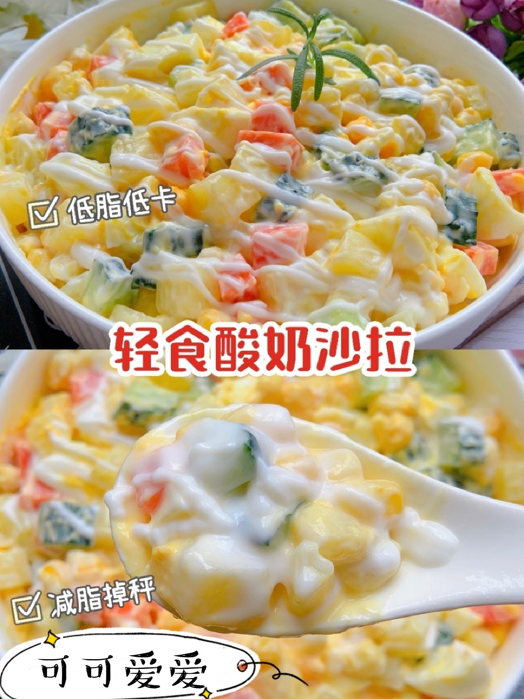 🌹🌹今天跟朋友们分享一个低脂营养,清爽美味掉秤快的减脂餐:轻食酸奶沙拉,减肥期必不可少,常吃掉秤好快!