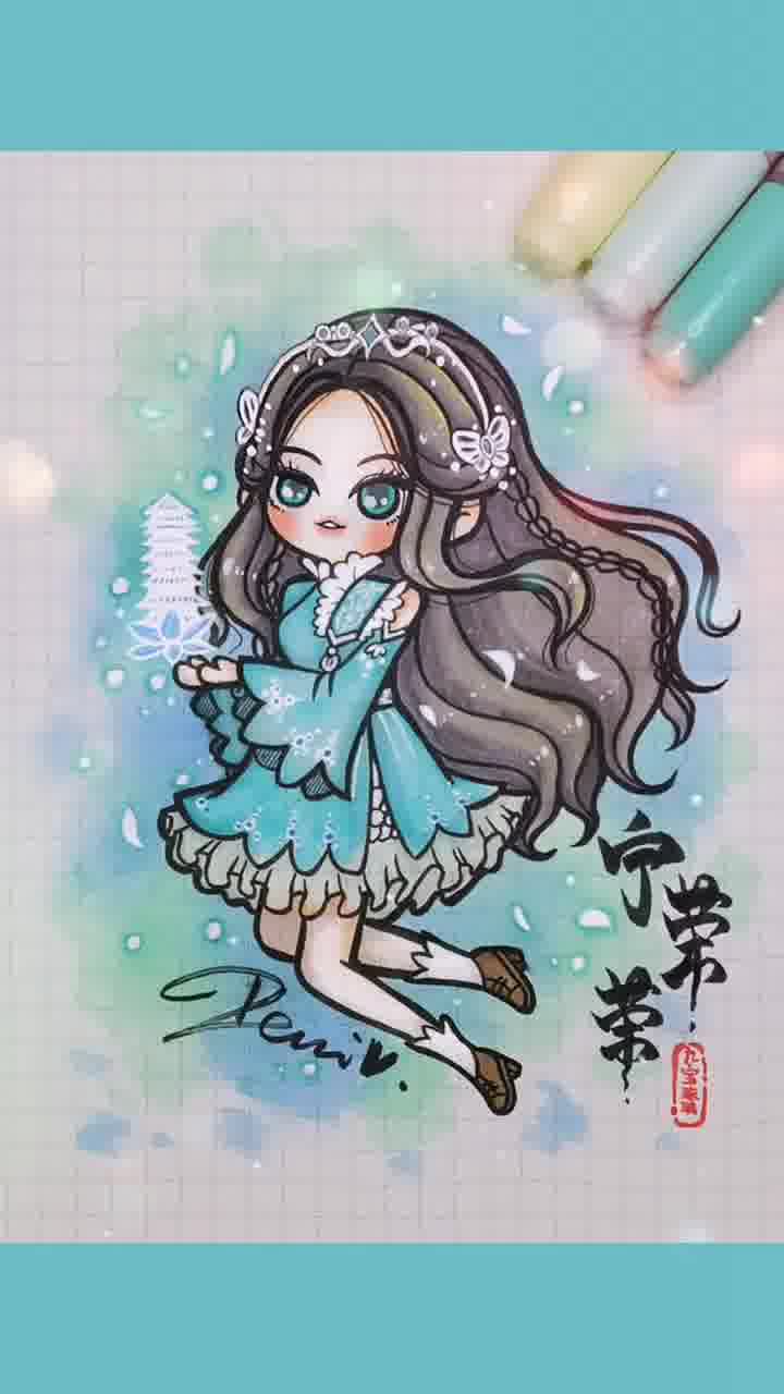 手绘斗罗大陆荣荣:七宝转出有琉璃,九层九彩,九宝琉璃塔绘画-美图社区-美图秀秀