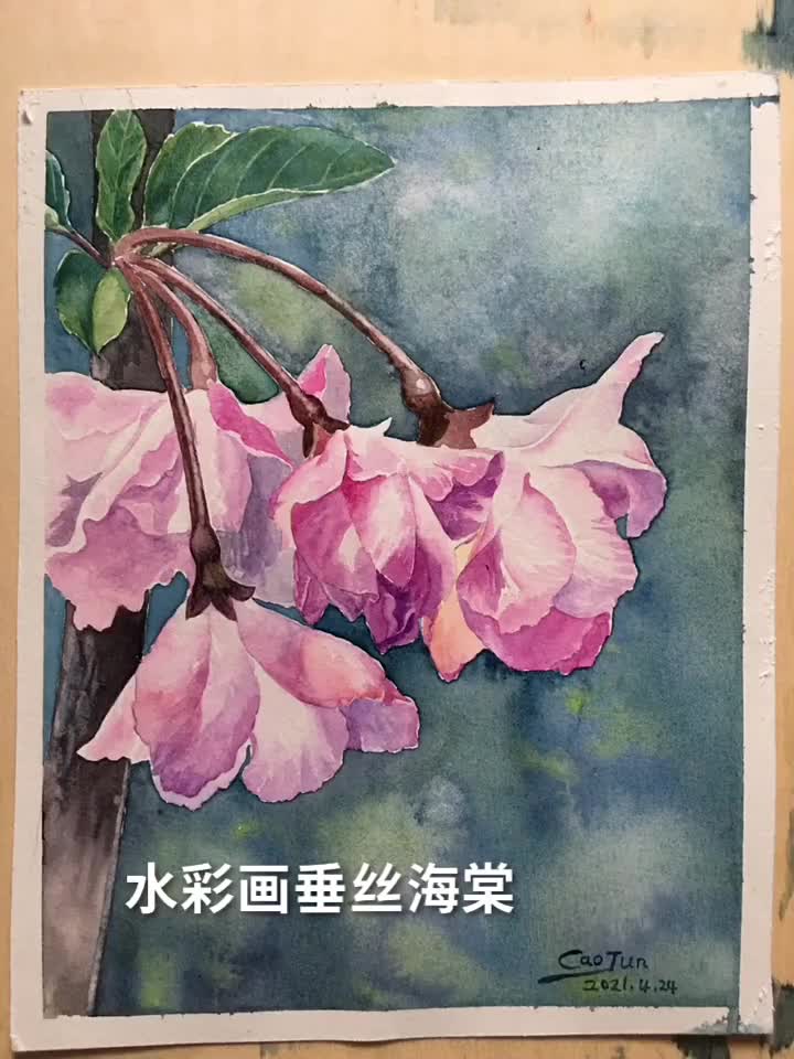 水彩手绘垂丝海棠绘画-美图社区-美图秀秀